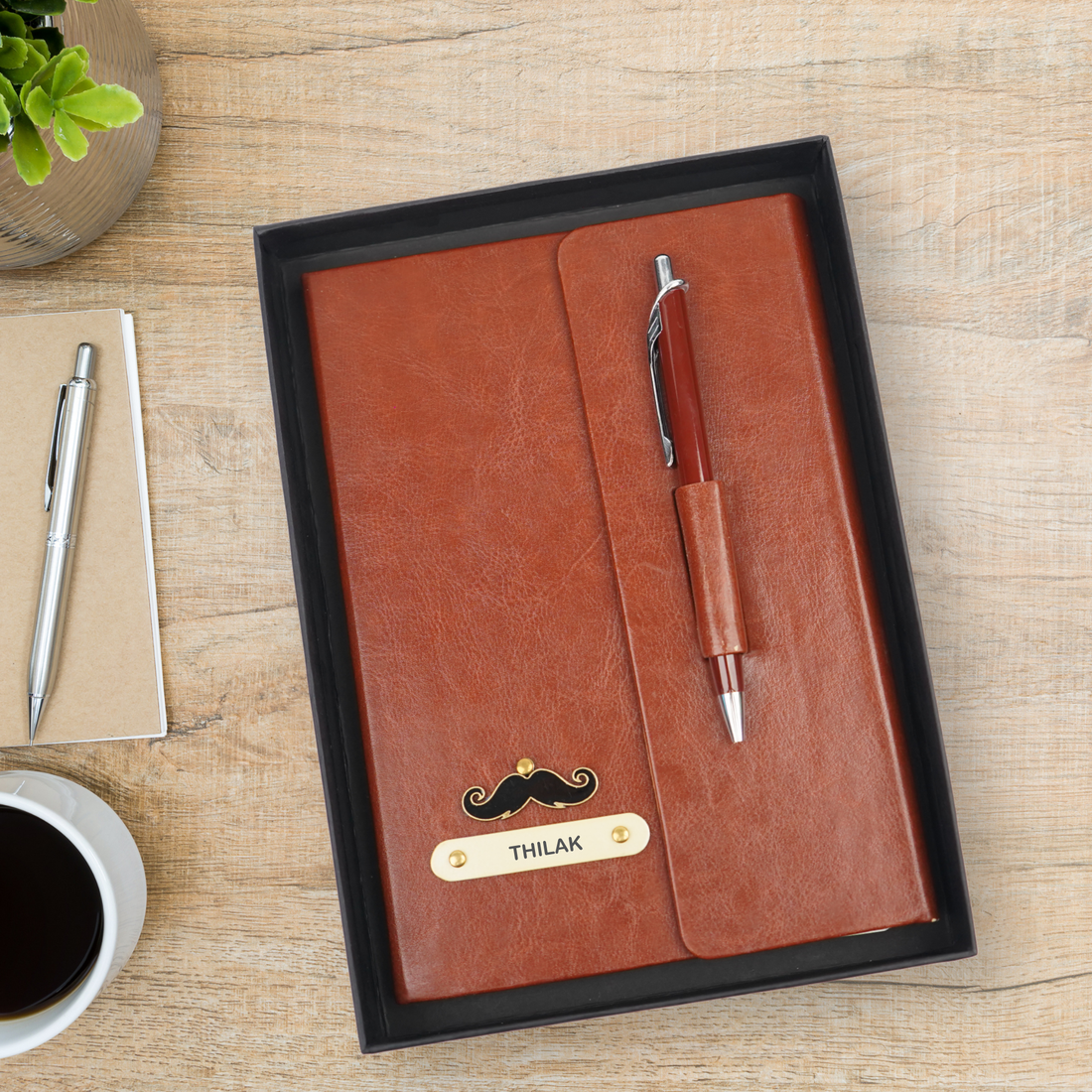 Classy Hardcover Diary + Classic Metal Pen - Brown
