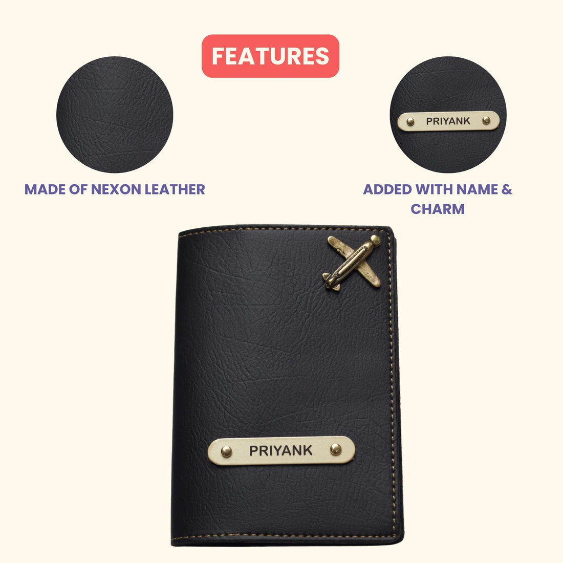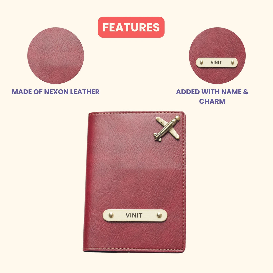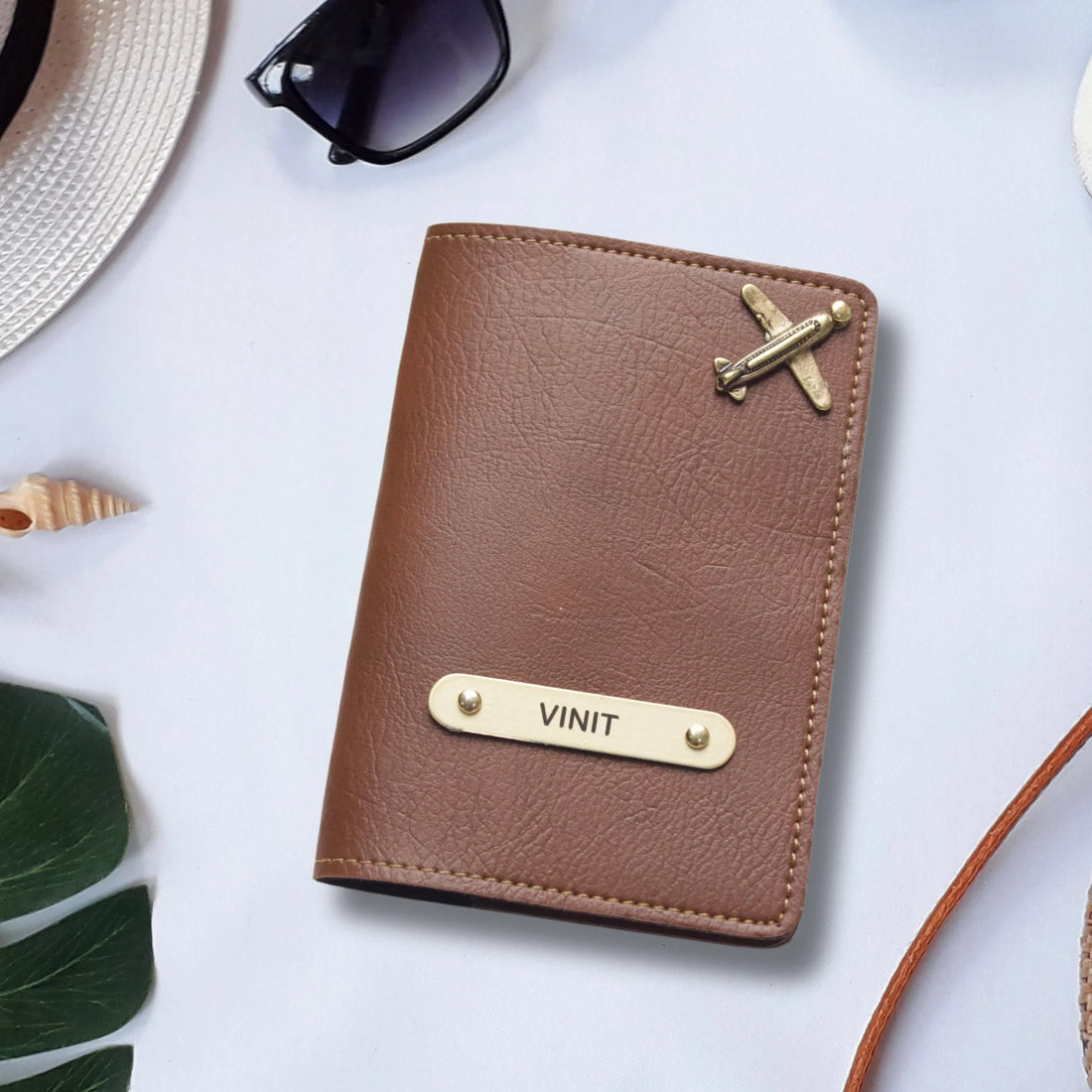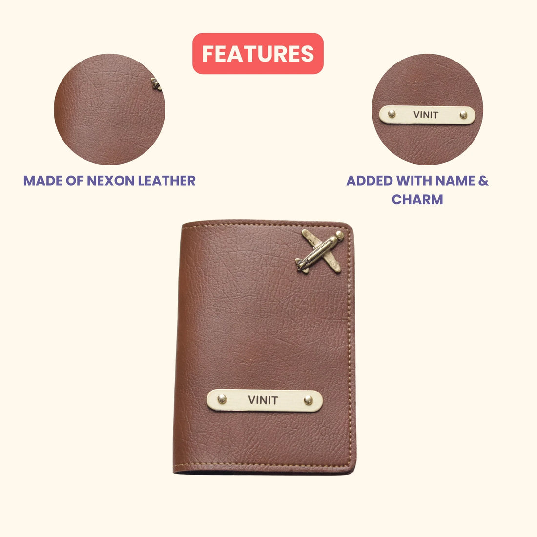 Classy Leather Customised Passport Cover with Charm (Brown)