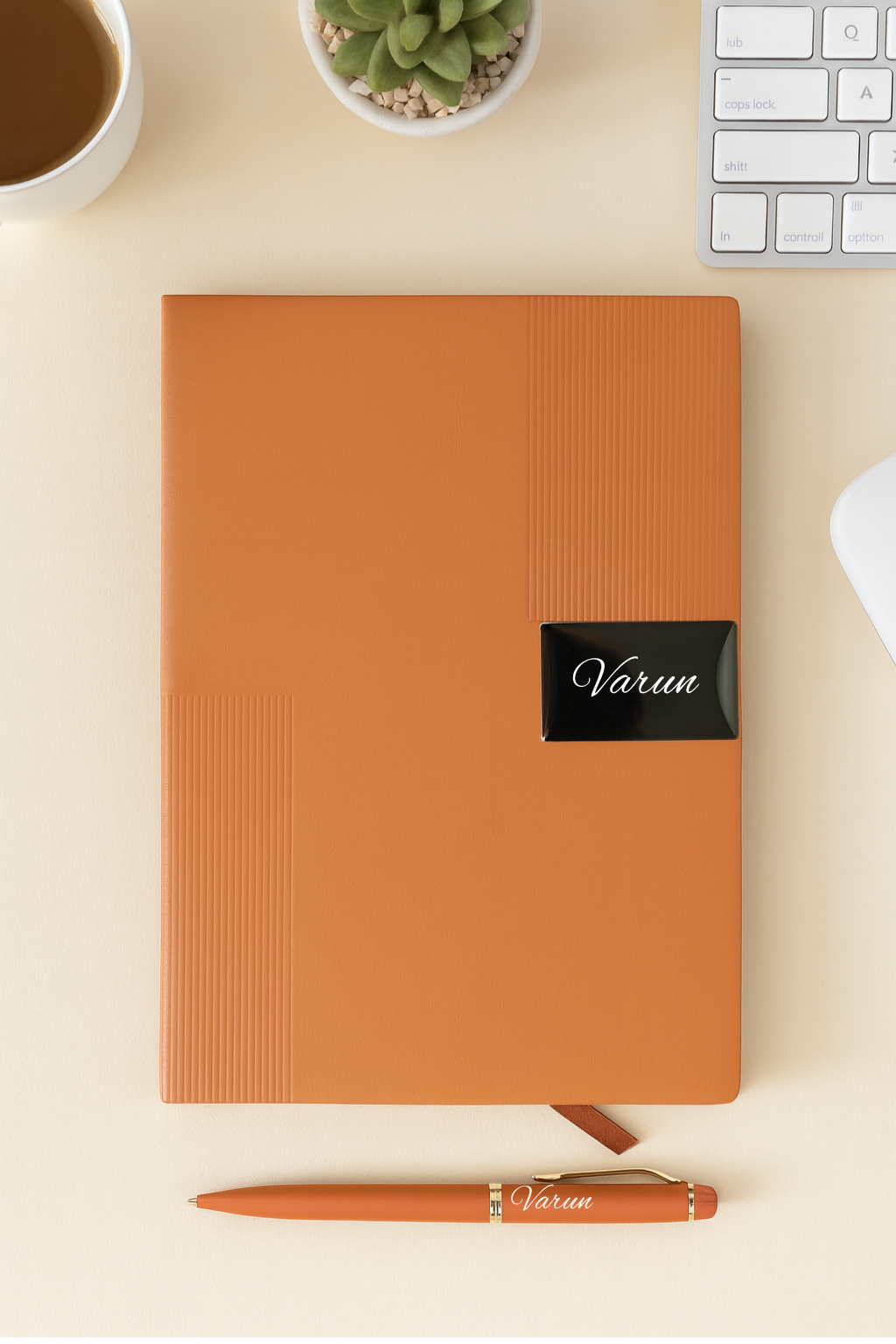 Nexon Metal Diary+ Classic Metal Pen+ Classic Stainless Steel Bottle -Brown