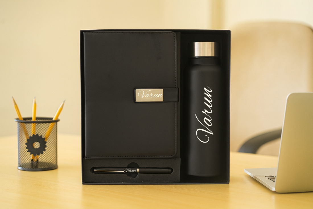 Nexon Metal Diary+ Classic Metal Pen+ Classic Stainless Steel Bottle -Black