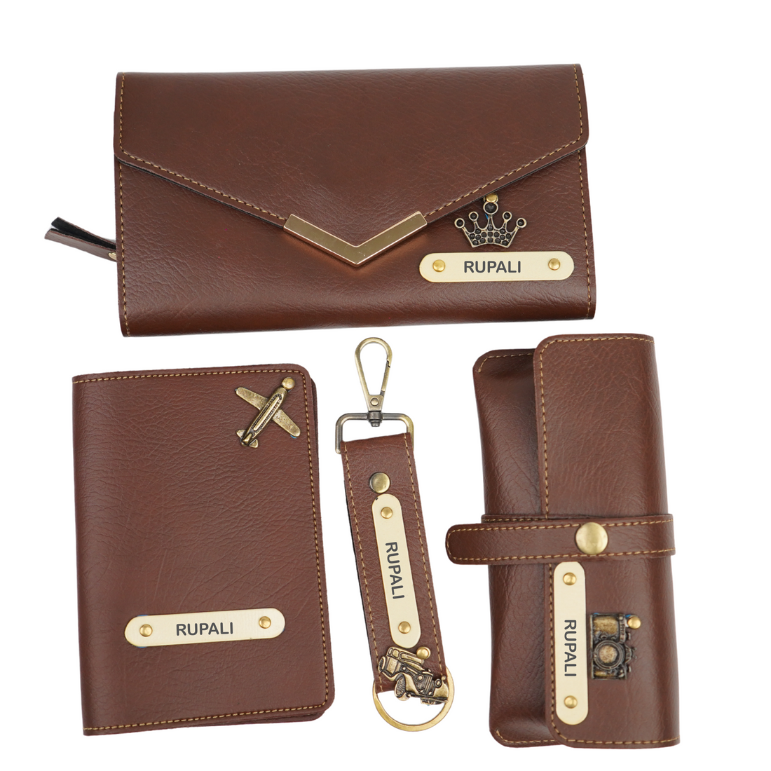 Nexon Ladies 4 Pc Combo (Lady Wallet 1.0, Passport, Eyewear, Keychain) (Brown)