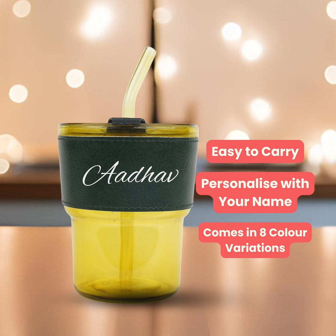 Personalized Leather Sleeve Coffee Tumbler-Green
