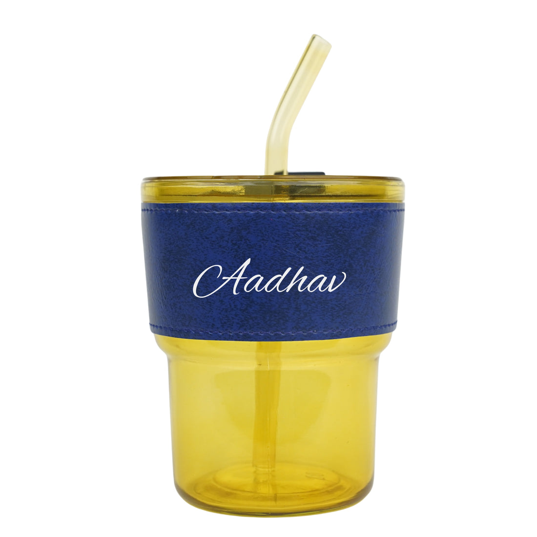Personalized Leather Sleeve Coffee Tumbler-Blue