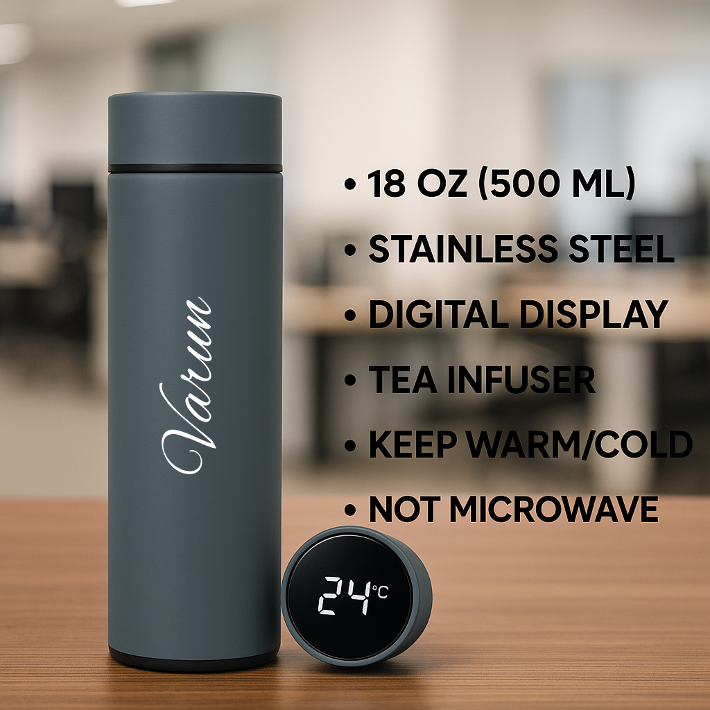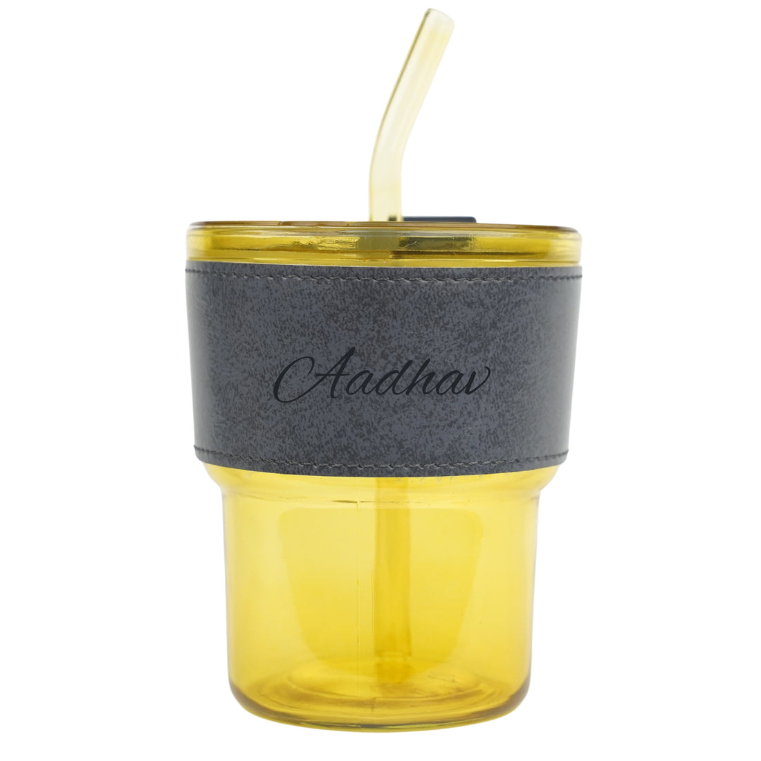 Personalized Leather Sleeve Coffee Tumbler-Grey
