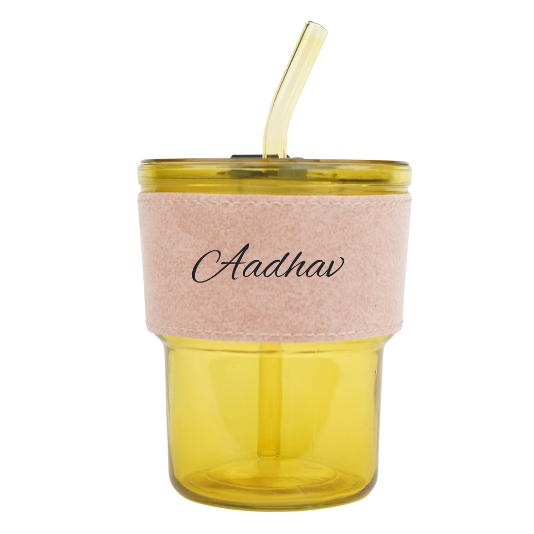 Personalized Leather Sleeve Coffee Tumbler-Pink