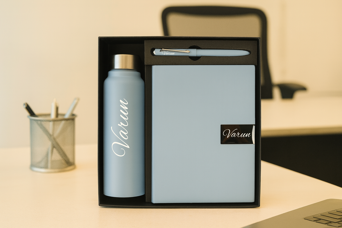 Nexon Metal Diary+ Classic Metal Pen+ Classic Stainless Steel Bottle -Blue