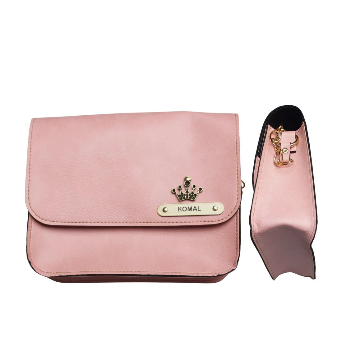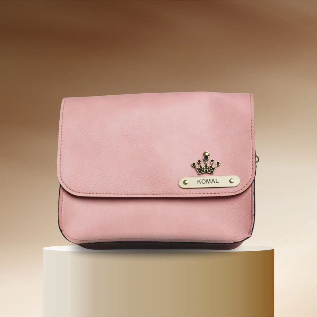 Personalized Nexon Leather Chained Sling Bag - Pink