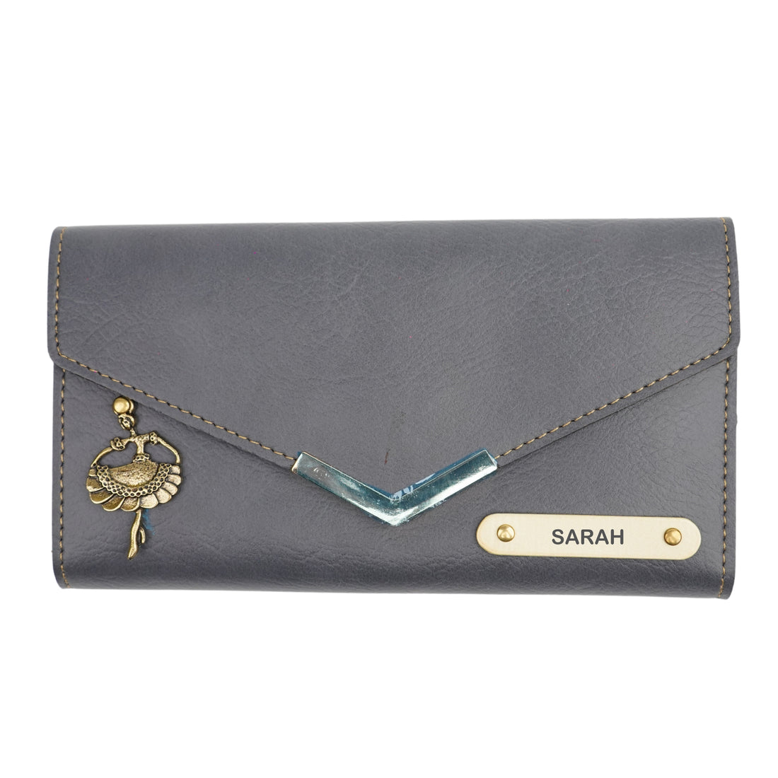 Classy Leather Customised Stylish Lady Wallet (Grey)