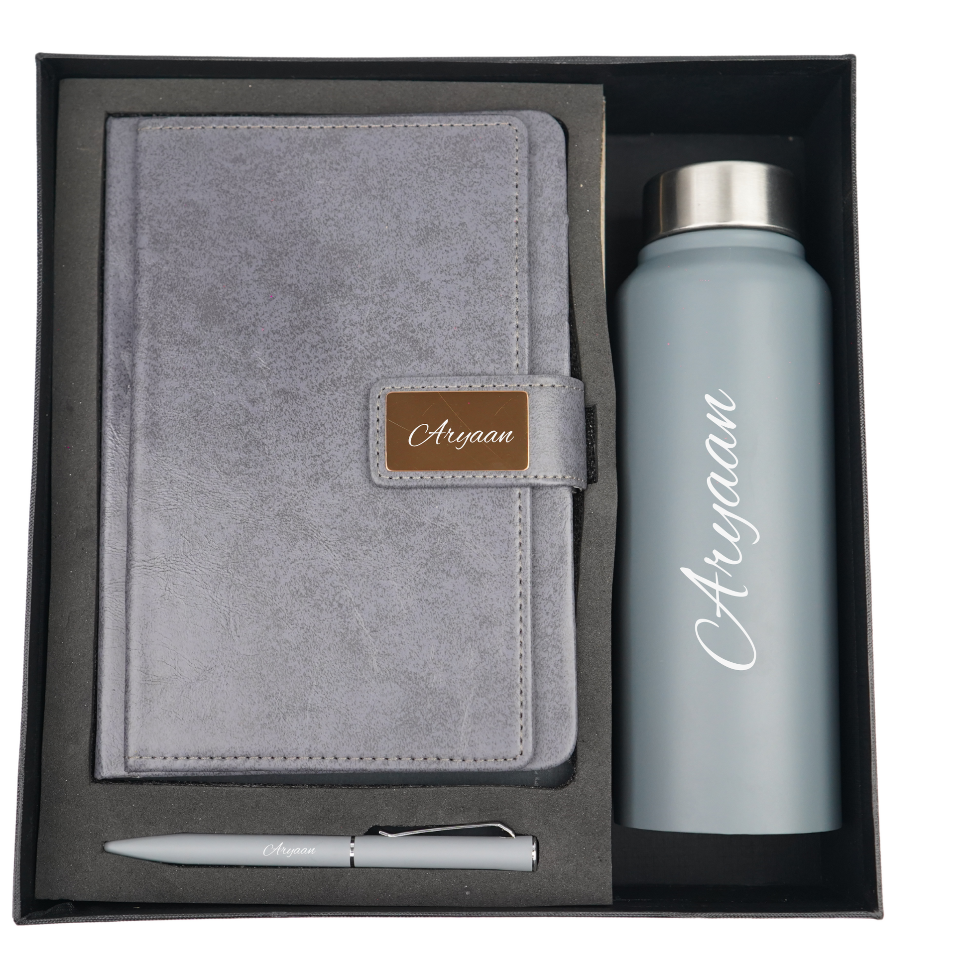 In conclusion, our Classy Hardcover Diary, Classic Metal Pen, and Classic Smart Bottle make the perfect set for anyone who values organization, style, and convenience 🙌.