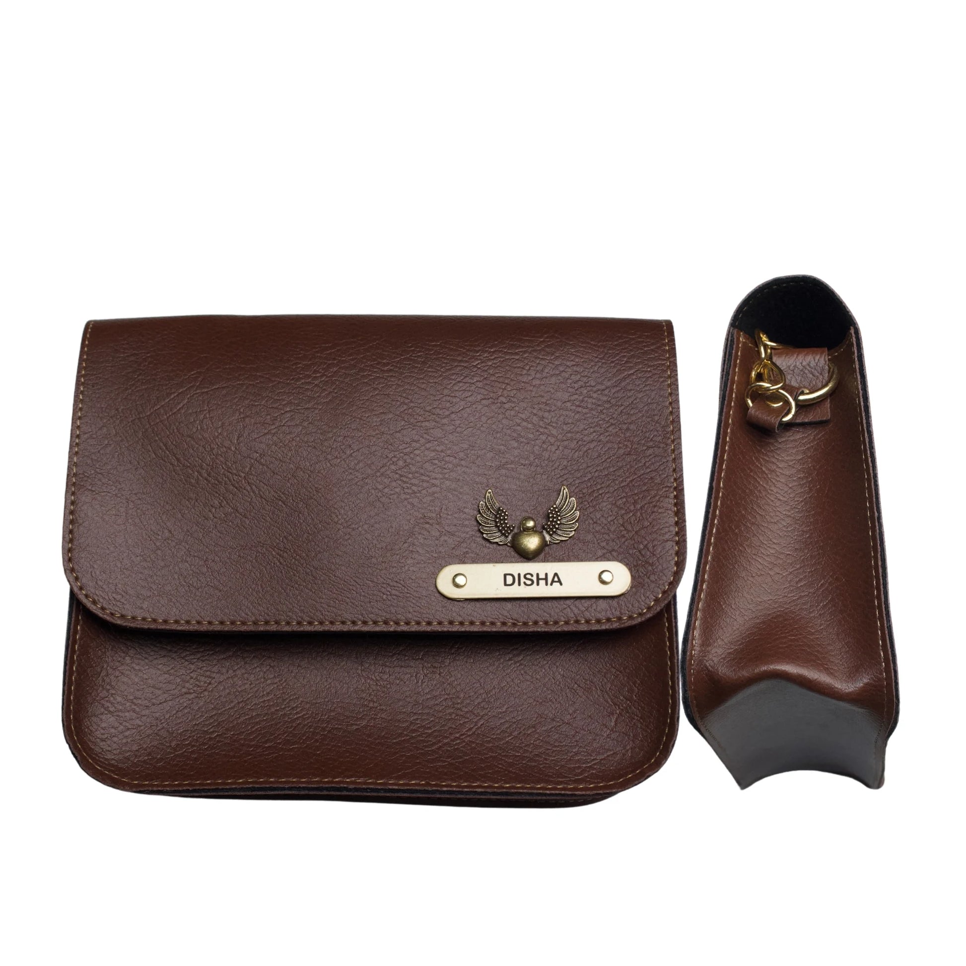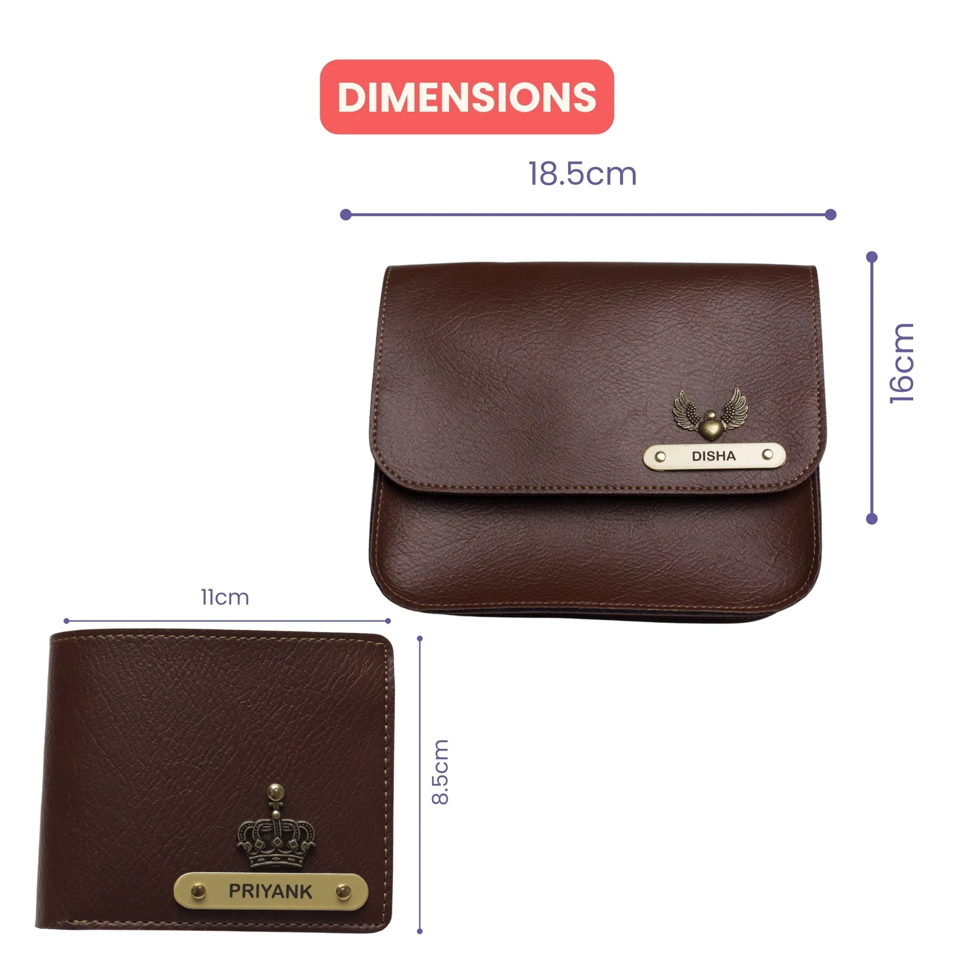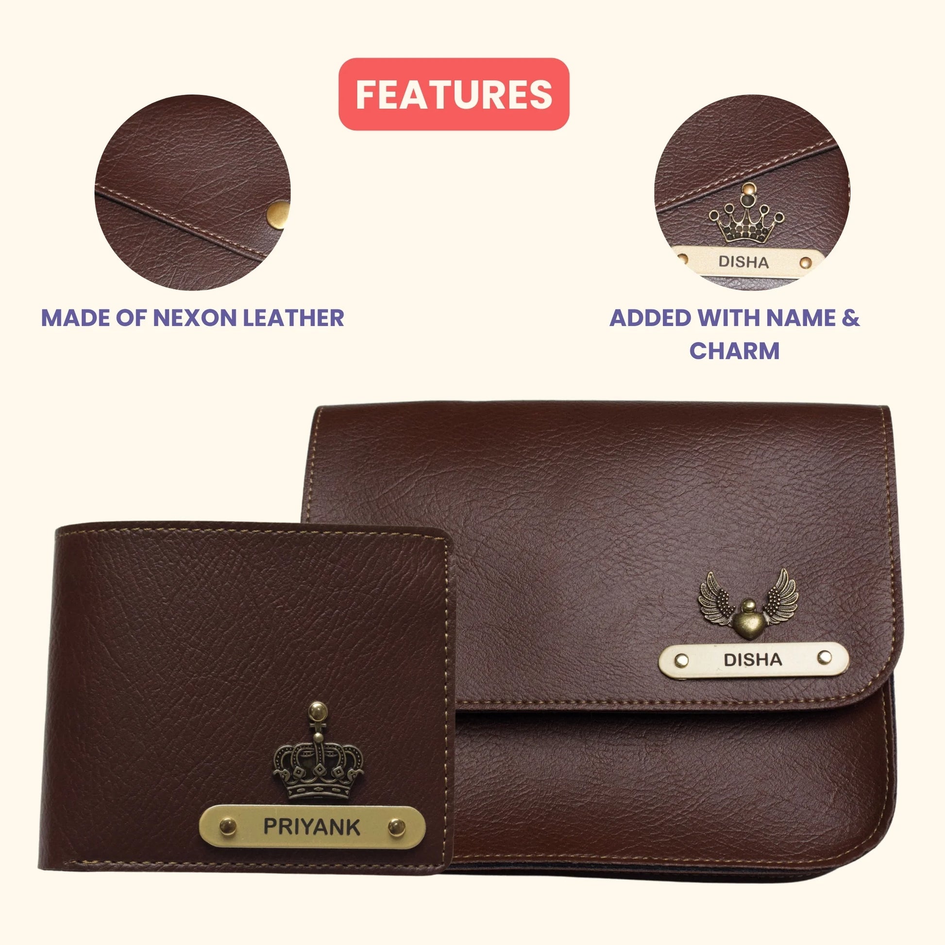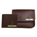 Nexon Leather Personalized Couple's Combo : Chained Sling Bag & Men's Wallet - Brown