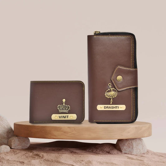 Personalized Couple's Combo : Premium Lady Wallet ( Product 1 )& Men's Wallet(Product 2) - Brown