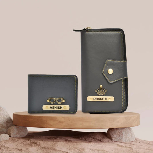 Personalized Couple's Combo : Premium Lady Wallet ( Product 1 )& Men's Wallet(Product 2) - Grey