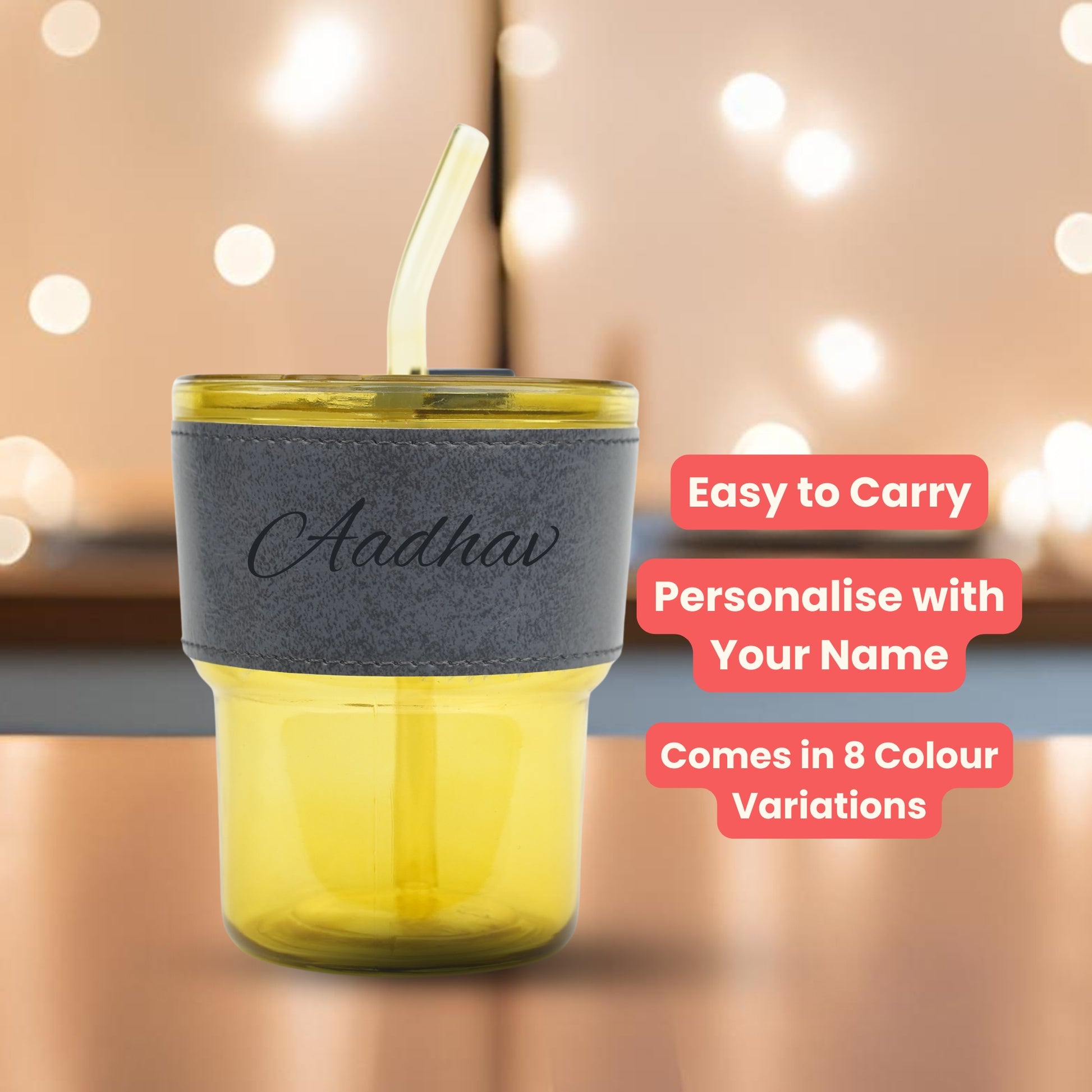 Take your coffee anywhere in style ☕✨ with this chic coffee tumbler. Elevate your drinkware with this personalized piece featuring a sleek leather sleeve 🧋 and straw, perfect for hot or cold beverages ❄️🔥. Crafted from durable borosilicate glass 🥤, it's built to withstand daily use while staying toxin-free 🧼 and easy to clean. Stylish and functional, this tumbler seamlessly combines practicality and elegance 💼💖. Its compact design makes it simple to store 📦, making it an ideal gift 🎁 for coffee lovers or anyone on the go 🚶♂️💨. Personalize the tumbler with your name 🖊️ to enjoy your drinks in timeless fashion ⏳☕.