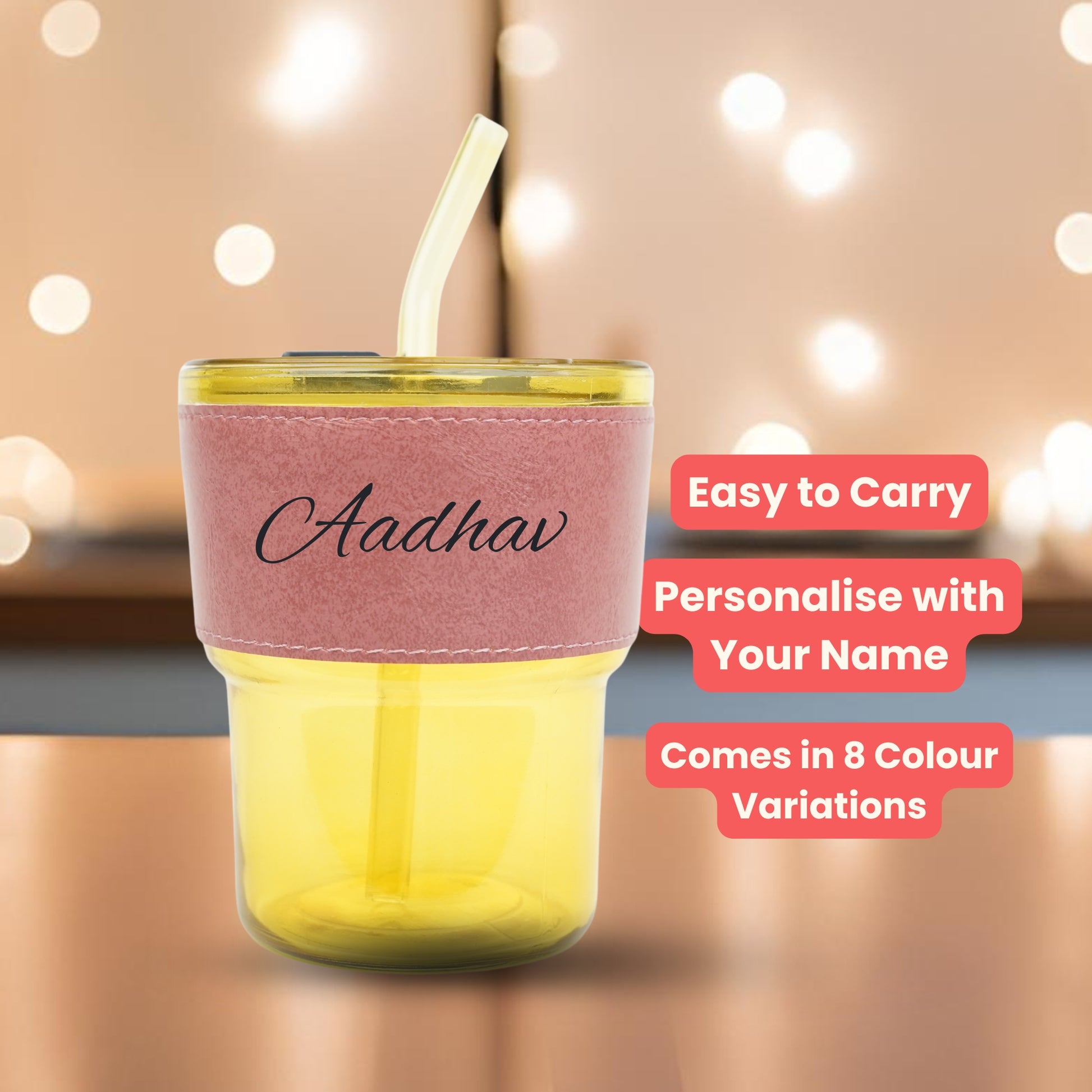 Take your coffee anywhere in style ☕✨ with this chic coffee tumbler. Elevate your drinkware with this personalized piece featuring a sleek leather sleeve 🧋 and straw, perfect for hot or cold beverages ❄️🔥. Crafted from durable borosilicate glass 🥤, it's built to withstand daily use while staying toxin-free 🧼 and easy to clean. Stylish and functional, this tumbler seamlessly combines practicality and elegance 💼💖. Its compact design makes it simple to store 📦, making it an ideal gift 🎁 for coffee lovers or anyone on the go 🚶♂️💨. Personalize the tumbler with your name 🖊️ to enjoy your drinks in timeless fashion ⏳☕.