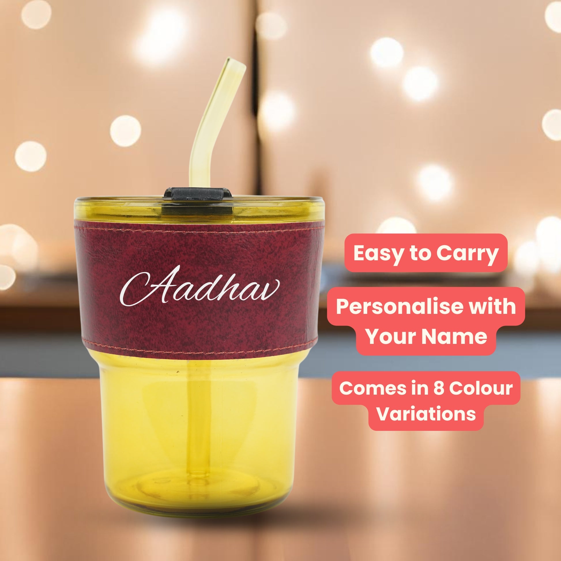 Take your coffee anywhere in style ☕✨ with this chic coffee tumbler. Elevate your drinkware with this personalized piece featuring a sleek leather sleeve 🧋 and straw, perfect for hot or cold beverages ❄️🔥. Crafted from durable borosilicate glass 🥤, it's built to withstand daily use while staying toxin-free 🧼 and easy to clean. Stylish and functional, this tumbler seamlessly combines practicality and elegance 💼💖. Its compact design makes it simple to store 📦, making it an ideal gift 🎁 for coffee lovers or anyone on the go 🚶♂️💨. Personalize the tumbler with your name 🖊️ to enjoy your drinks in timeless fashion ⏳☕.
