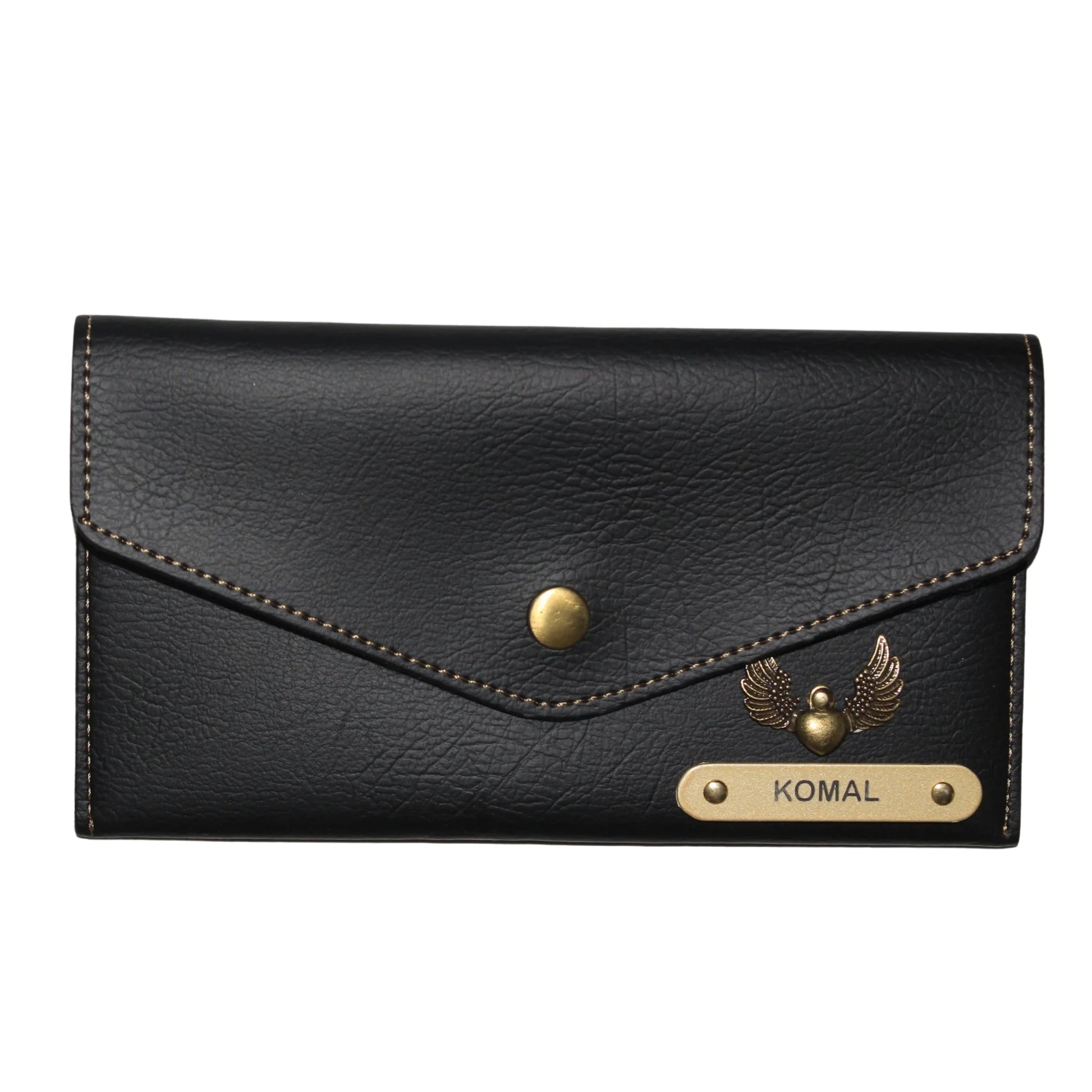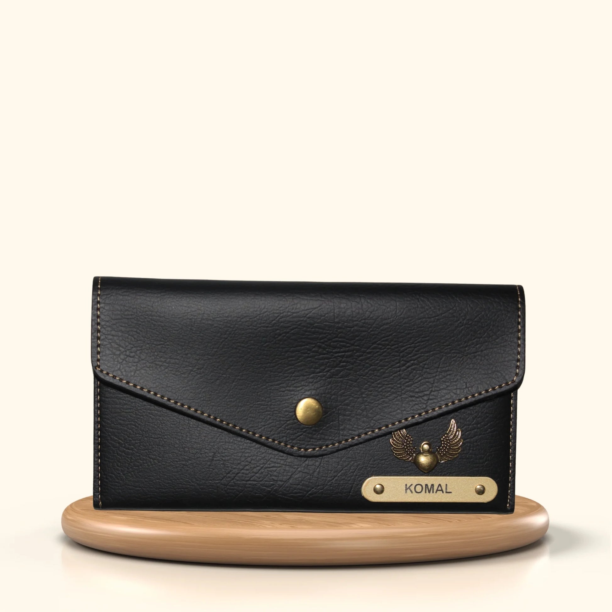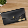 Nexon Leather Personalized Minimal Clutch With Charm - Black