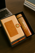 Elevate your gifting with this Premium Dual Shade Diary Gift Set, thoughtfully designed for style and functionality. The set includes a Dual Shade Diary for organized note-taking, a Classic Metal Pen that blends elegance with durability, and a 500ml Temperature Bottle that keeps beverages hot or cold for hours. Perfect for corporate gifting, festive occasions, or personal use, this classy combo is a blend of practicality and sophistication.
