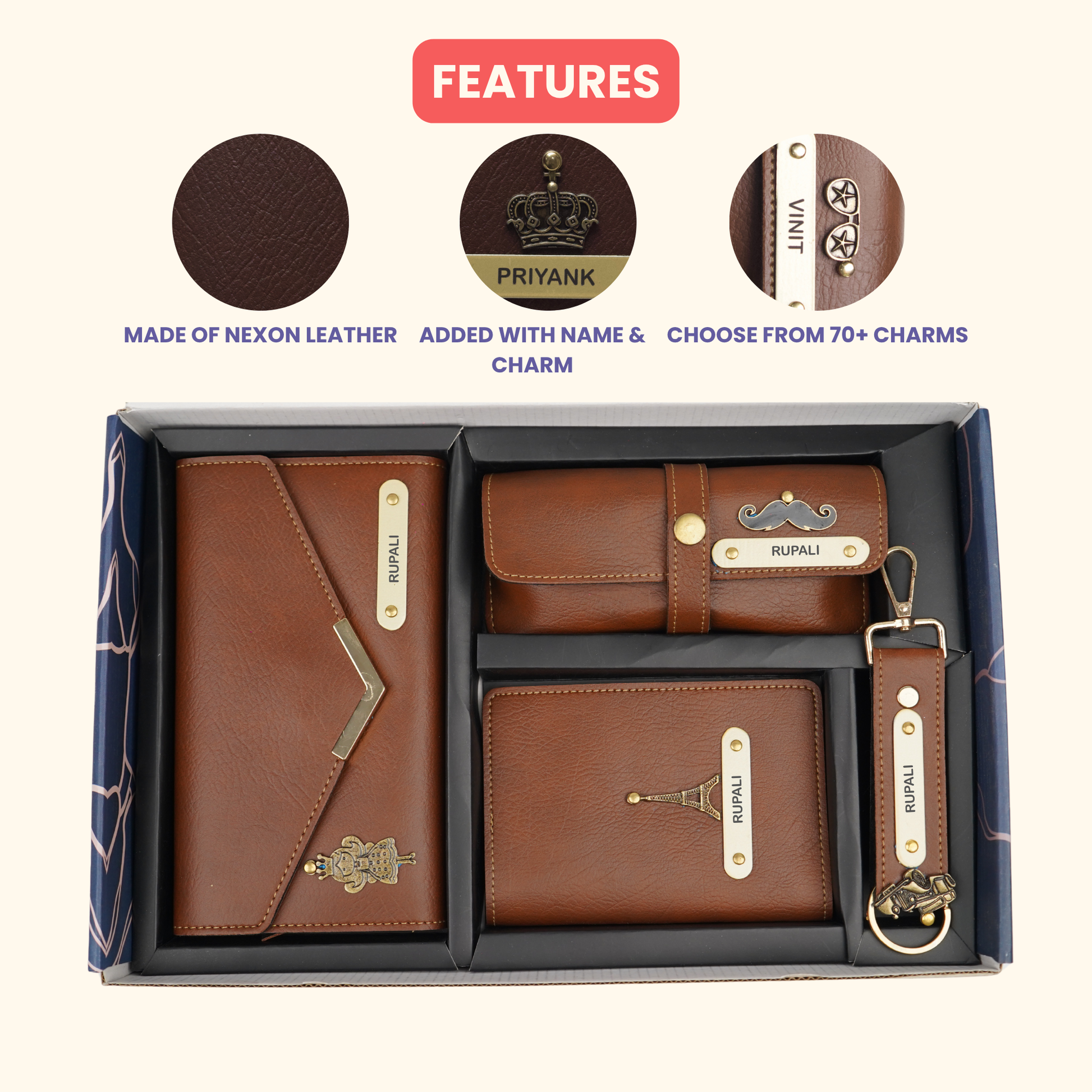 📌 You can check out stylish women’s combo(inclusive of tote bags, sling bags, makeup kits etc👛) for your sisters, mothers or girlfriends and classy men’s combos (inclusive of wallets, passport holders, keychains etc) for your fathers, brothers and boyfriends.