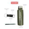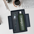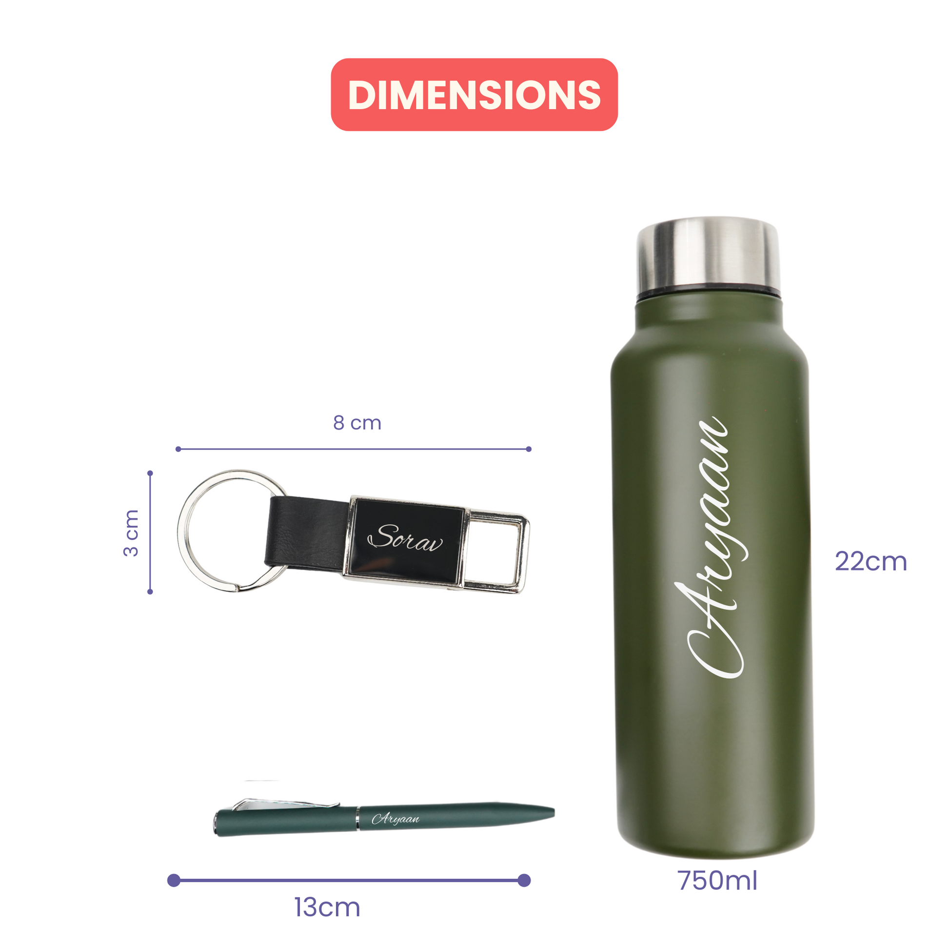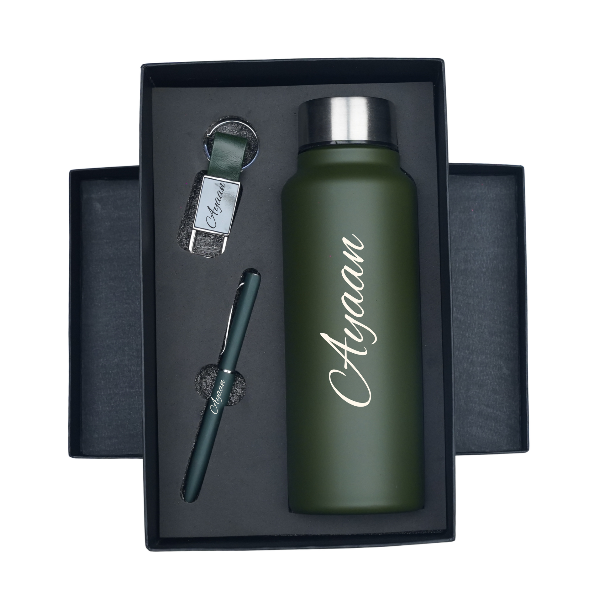 Classic Metal Pen+Classic Leather Metal Keychain+Classic Smart Bottle-Green