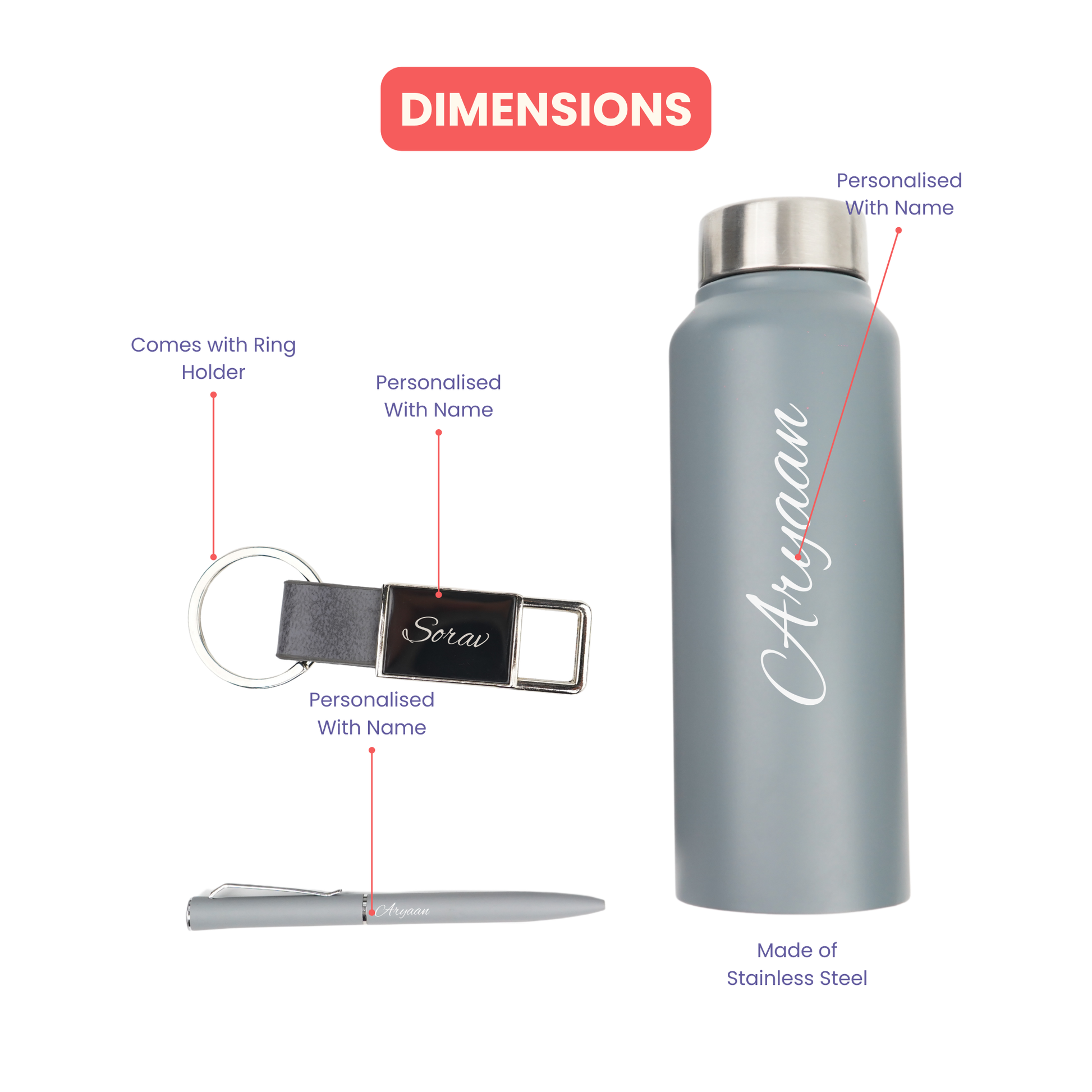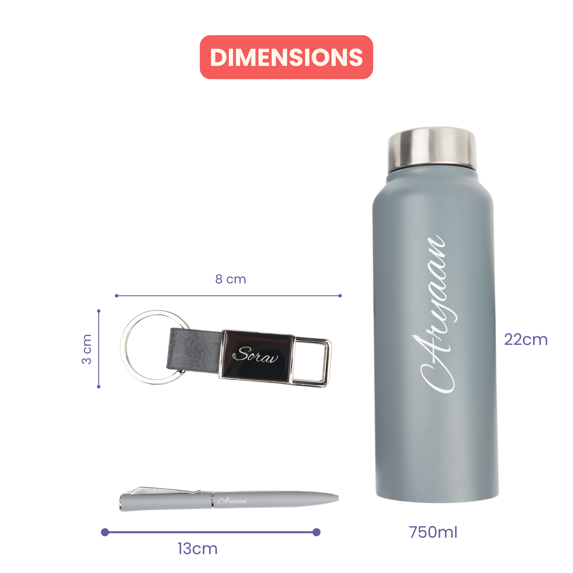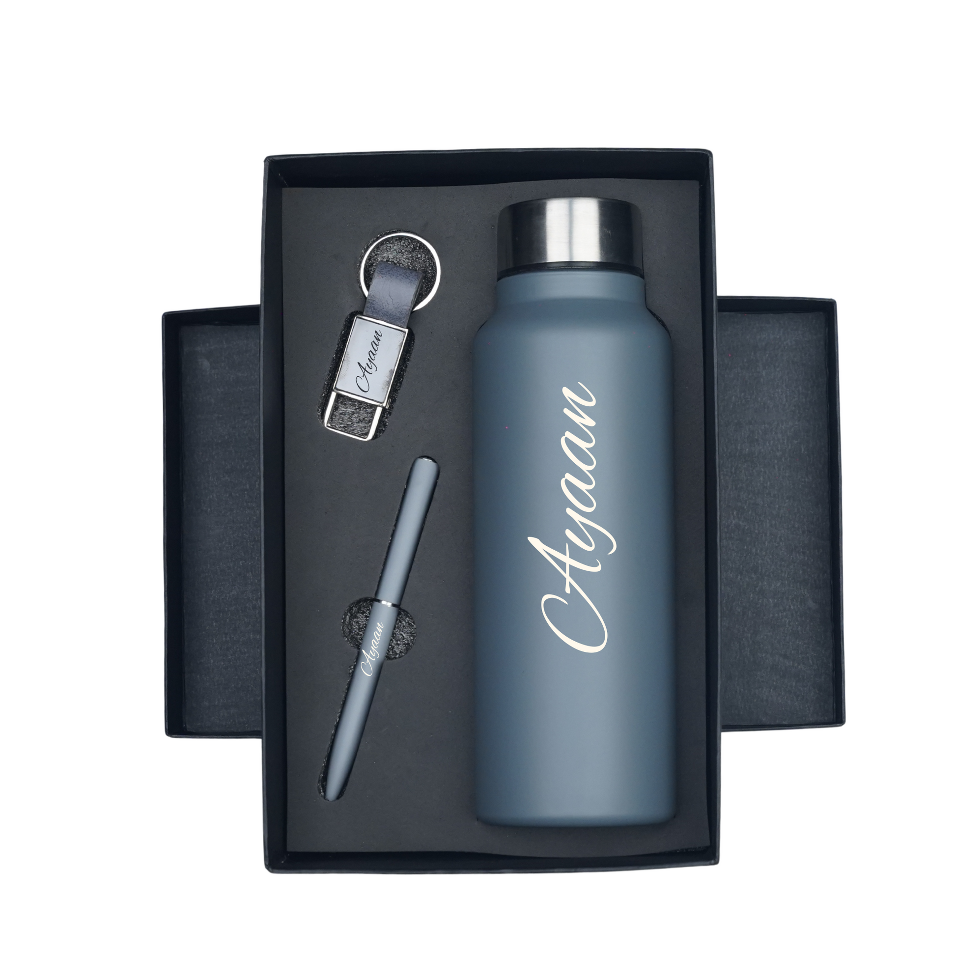 Classic Metal Pen+Classic Leather Metal Keychain+Classic Smart Bottle-Grey