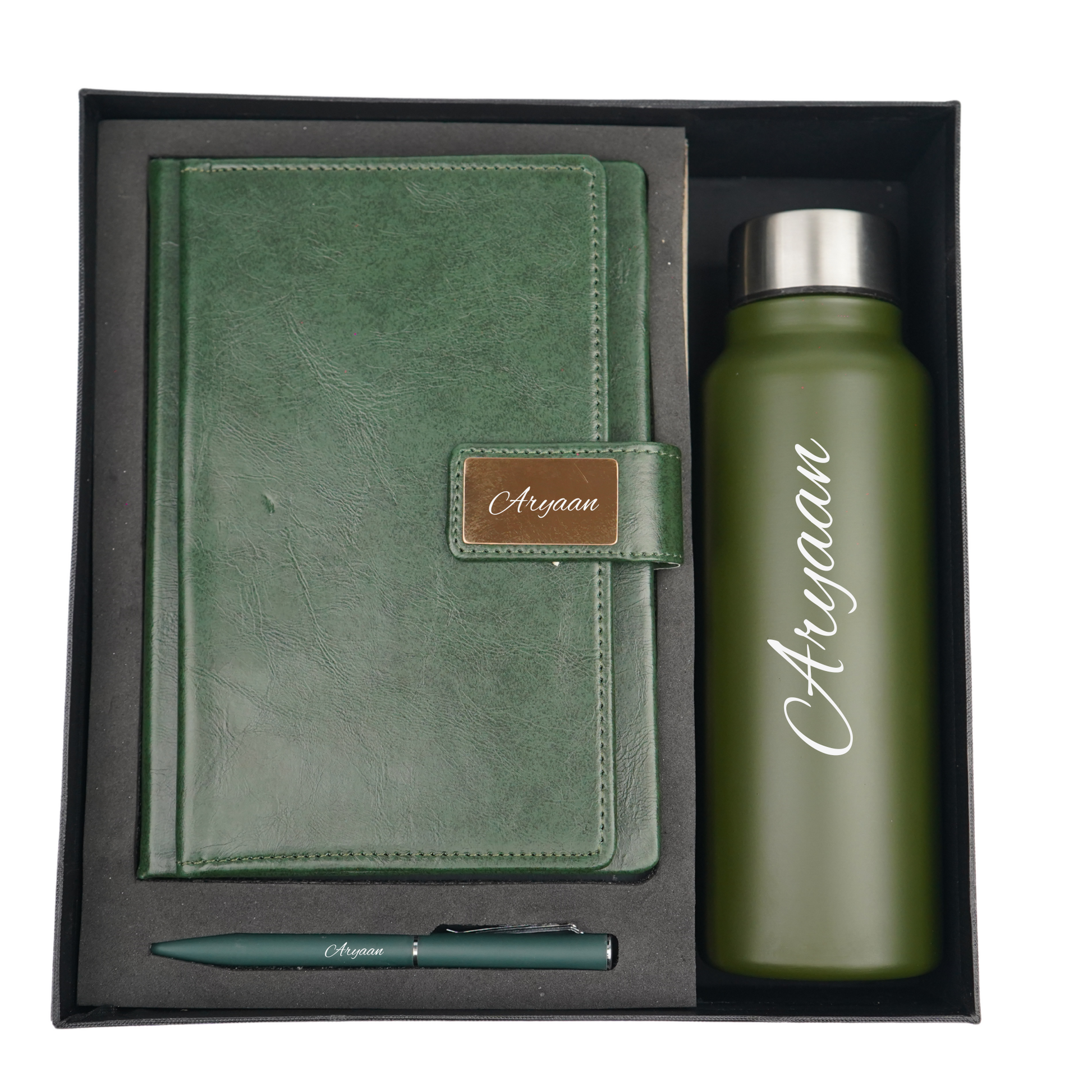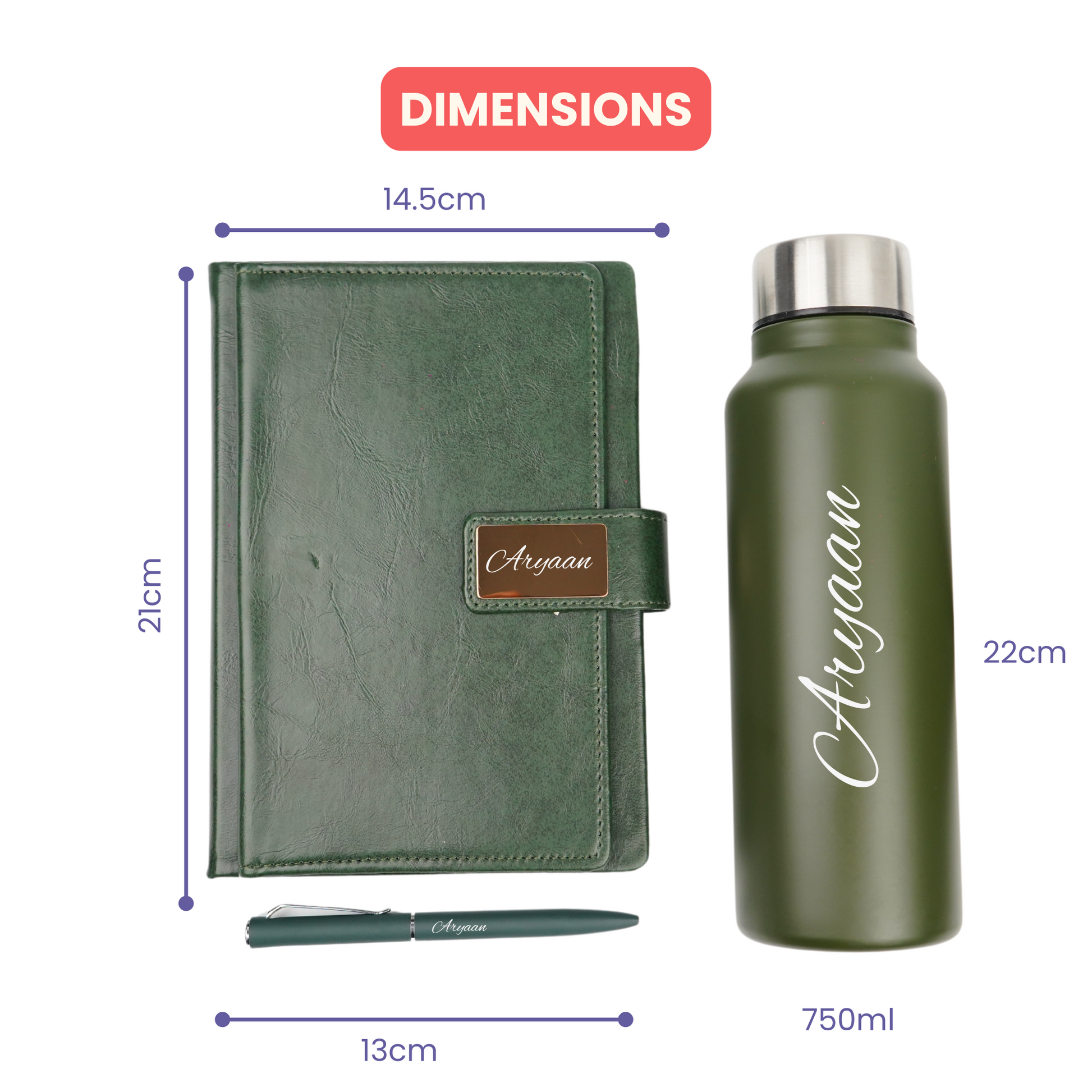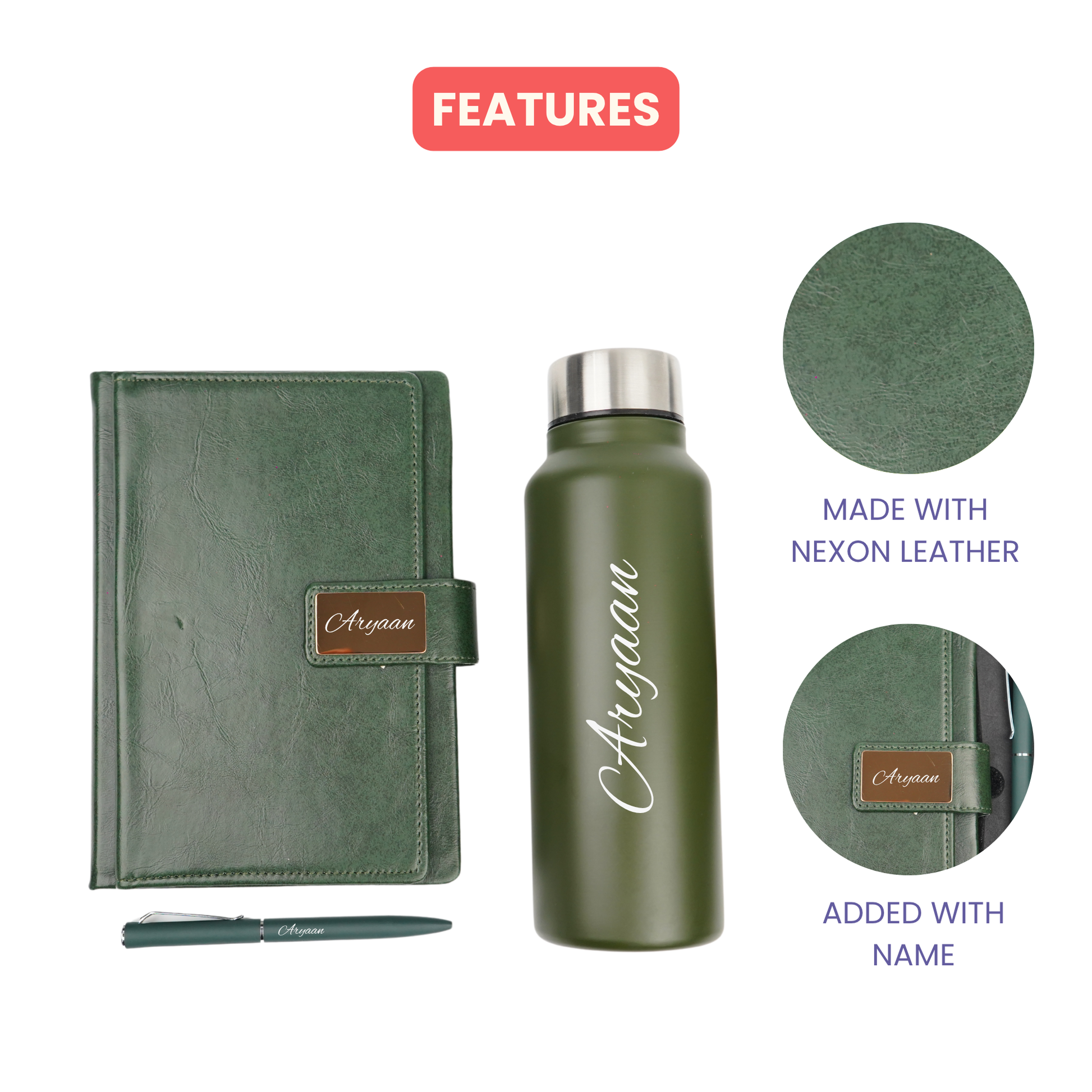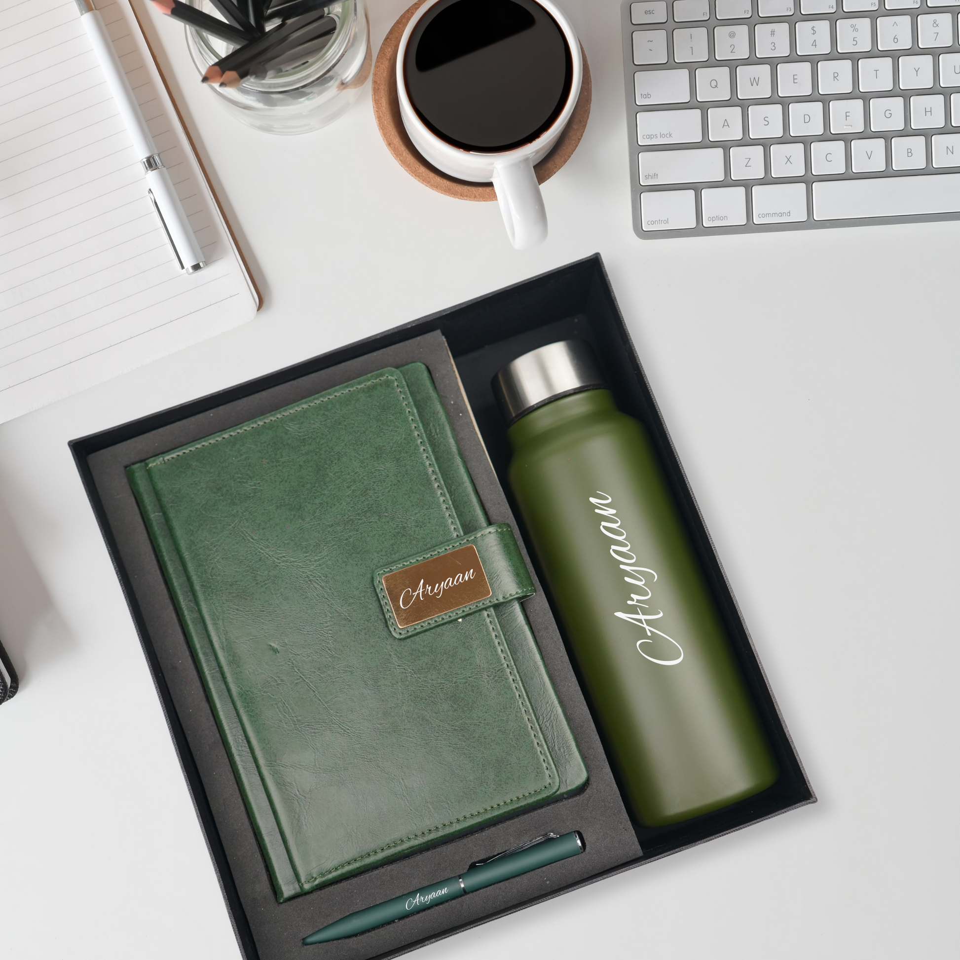 Classy Executive Diary + Classic Metal Pen + Classic Smart Bottle - Green