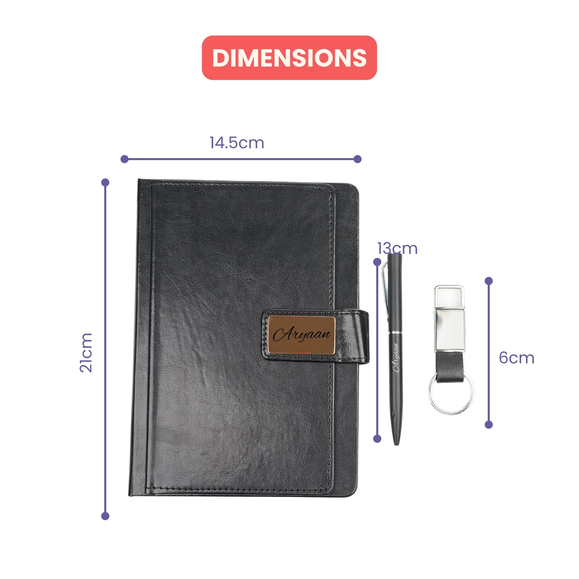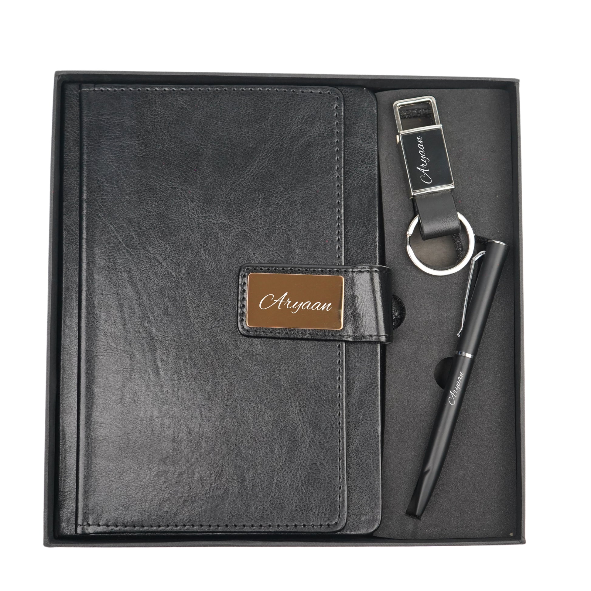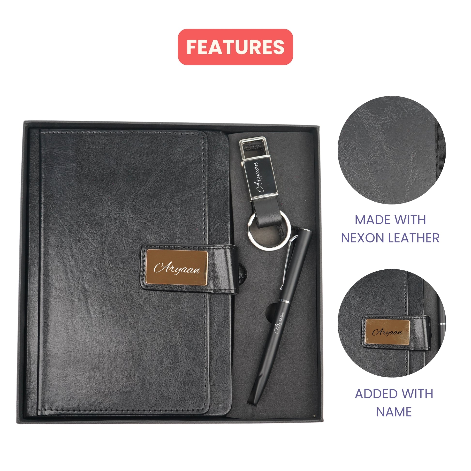 Classy Executive Diary + Classic Metal Pen + Classy Leather Metal Keychain - Black
