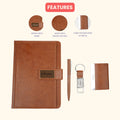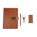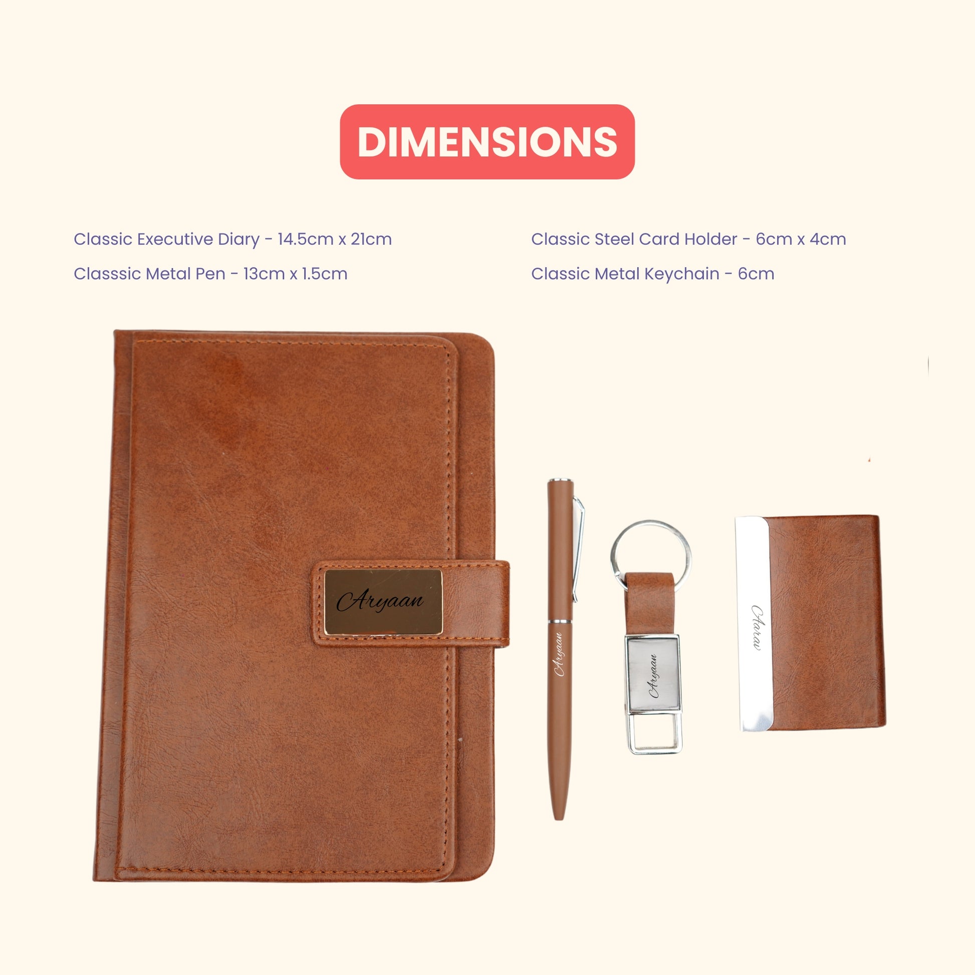 Classy Executive Diary + Classic Metal Pen + Classy Leather Metal Keychain + Classy Card Holder - Tan
