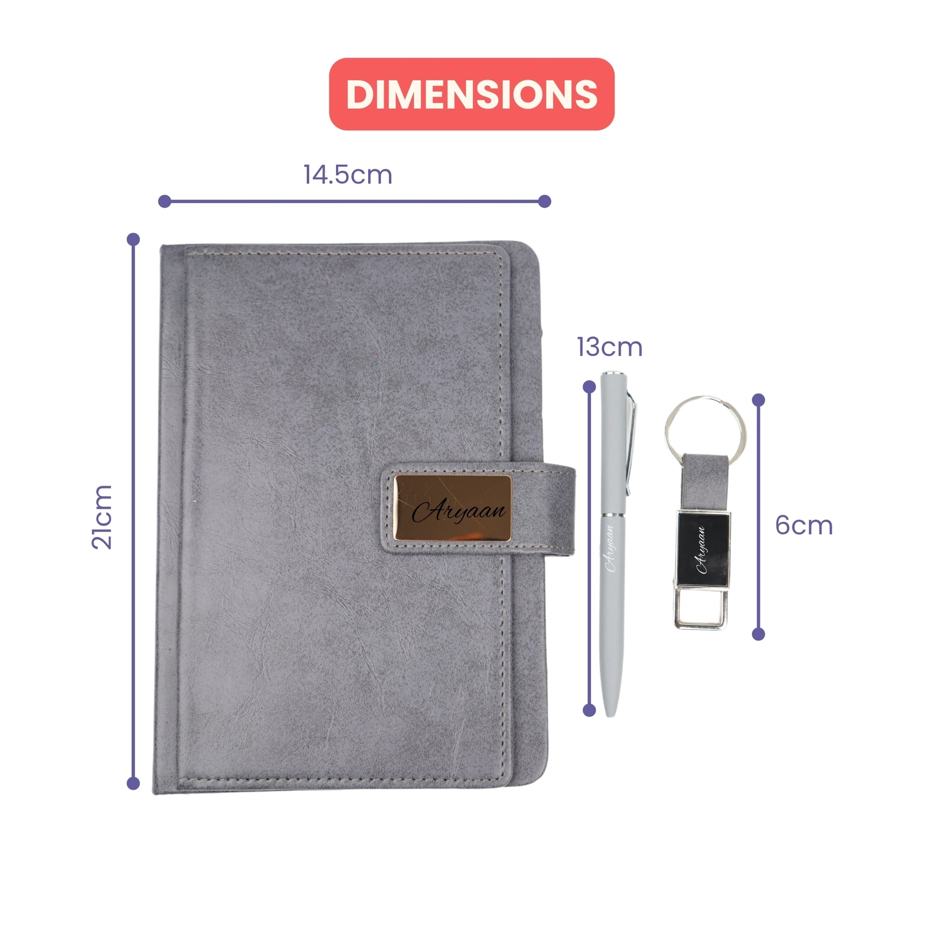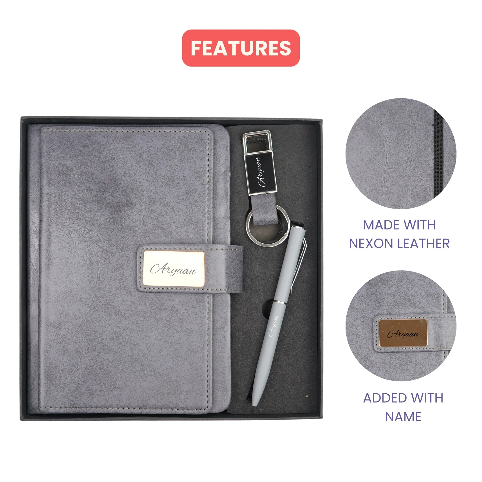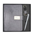 Classy Executive Diary + Classic Metal Pen + Classy Leather Metal Keychain - Grey