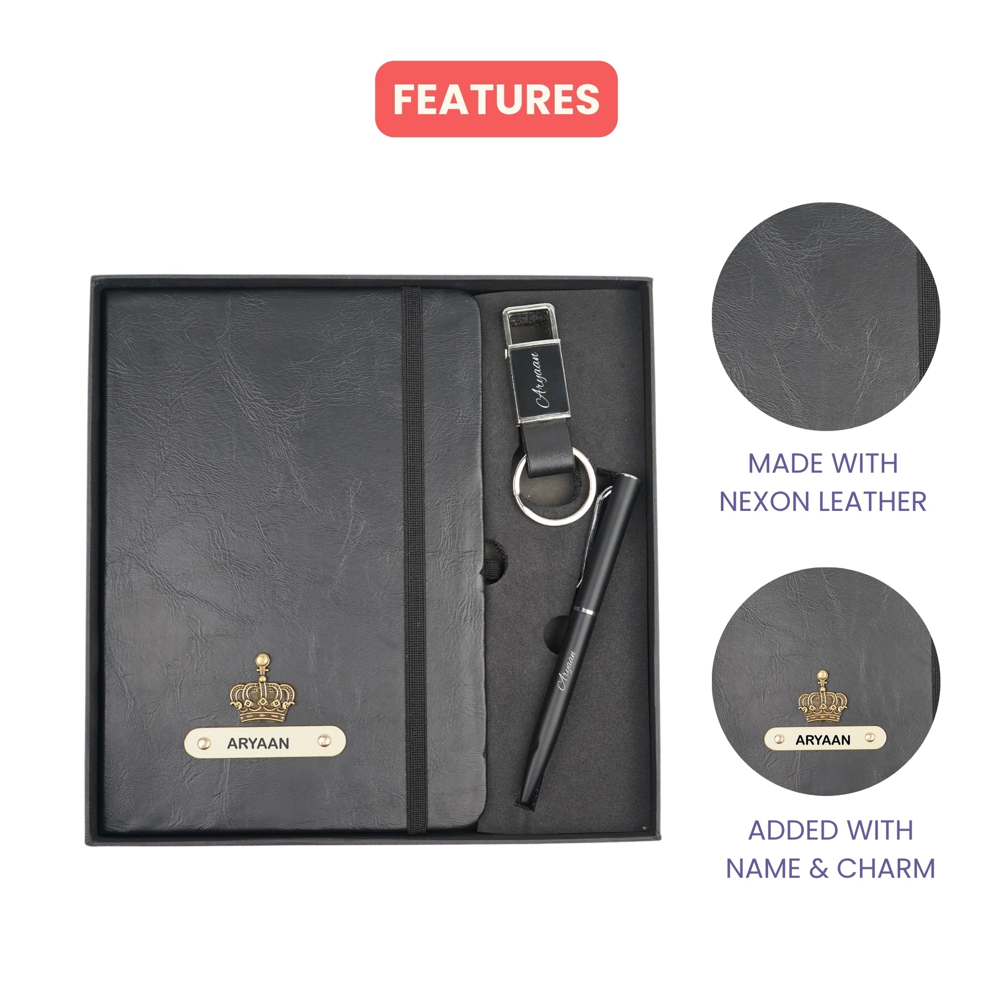 Classy Hardcover Diary + Classic Metal Pen + Classy Leather Metal Keychain - Black