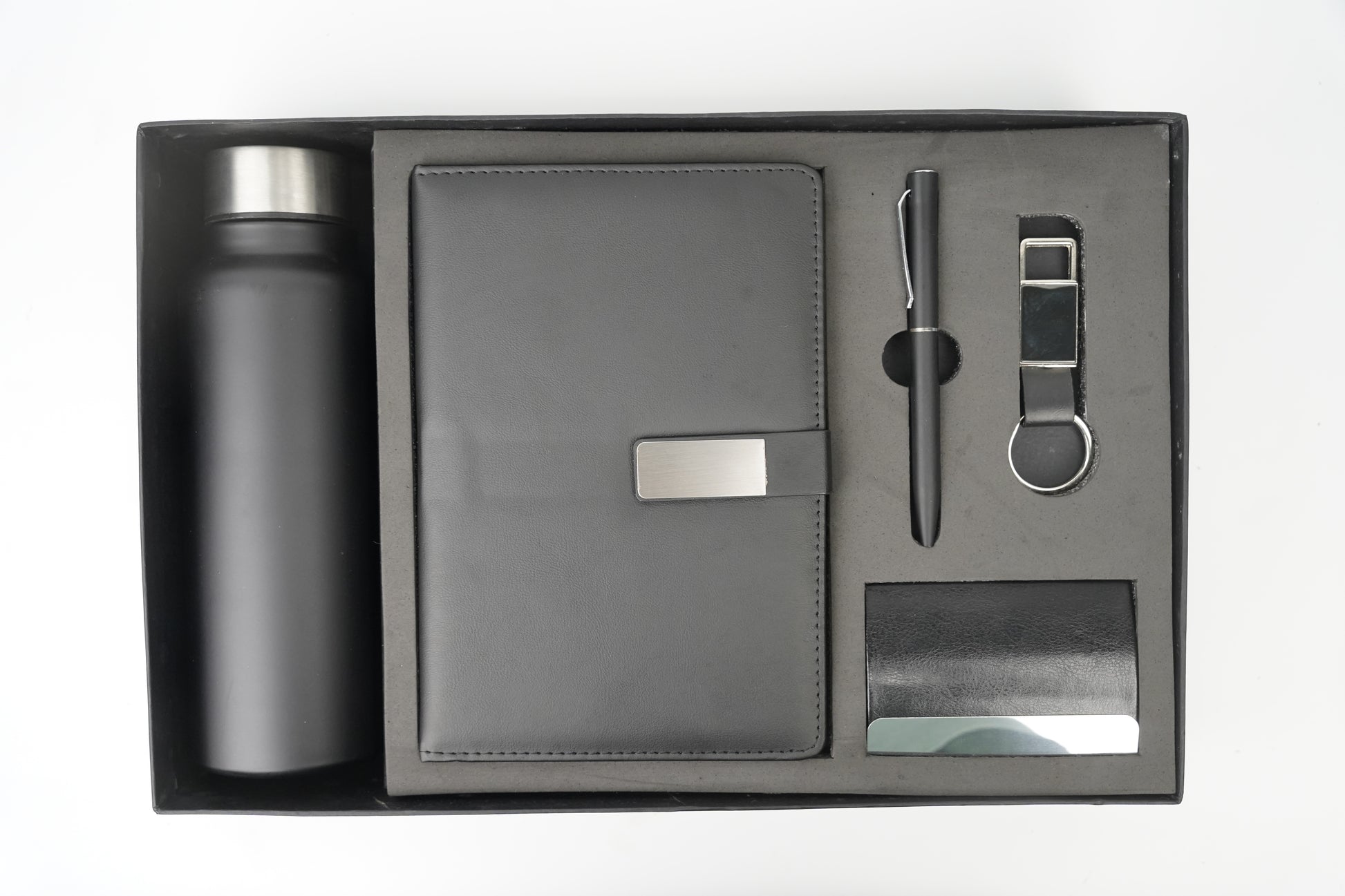 Classy Metal Flip Diary + Classic Metal Pen + Classy Leather Metal Keychain +Classy Card Holder + Classic Smart Bottle - Black