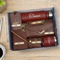 Customized Women Gift with Name & Charm, Leather Lady Wallett, Passport Cover, Water Bottle, Keychain, Customised Pen - Brown