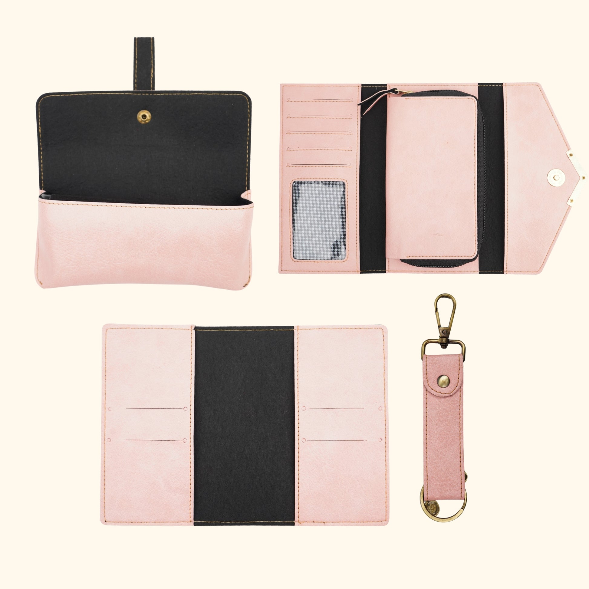 Customized Women Gift with Name & Charm, Leather Lady Wallett, Passport Cover, Water Bottle, Keychain, Customised Pen - Pink