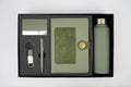 Dual Shade Diary + Classic Metal Pen + Classy Leather Metal Keychain +Classy Card Holder + Classic Smart Bottle - GREEN