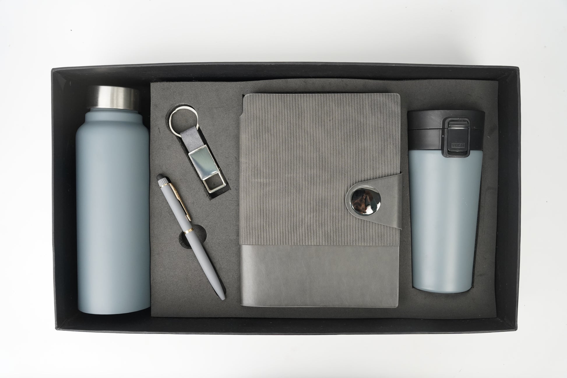 Nexon Flip Diary + Classic Metal Pen + Classy Leather Metal Keychain + Classic Smart Bottle + Stainless Steel Travell Mug - GREY