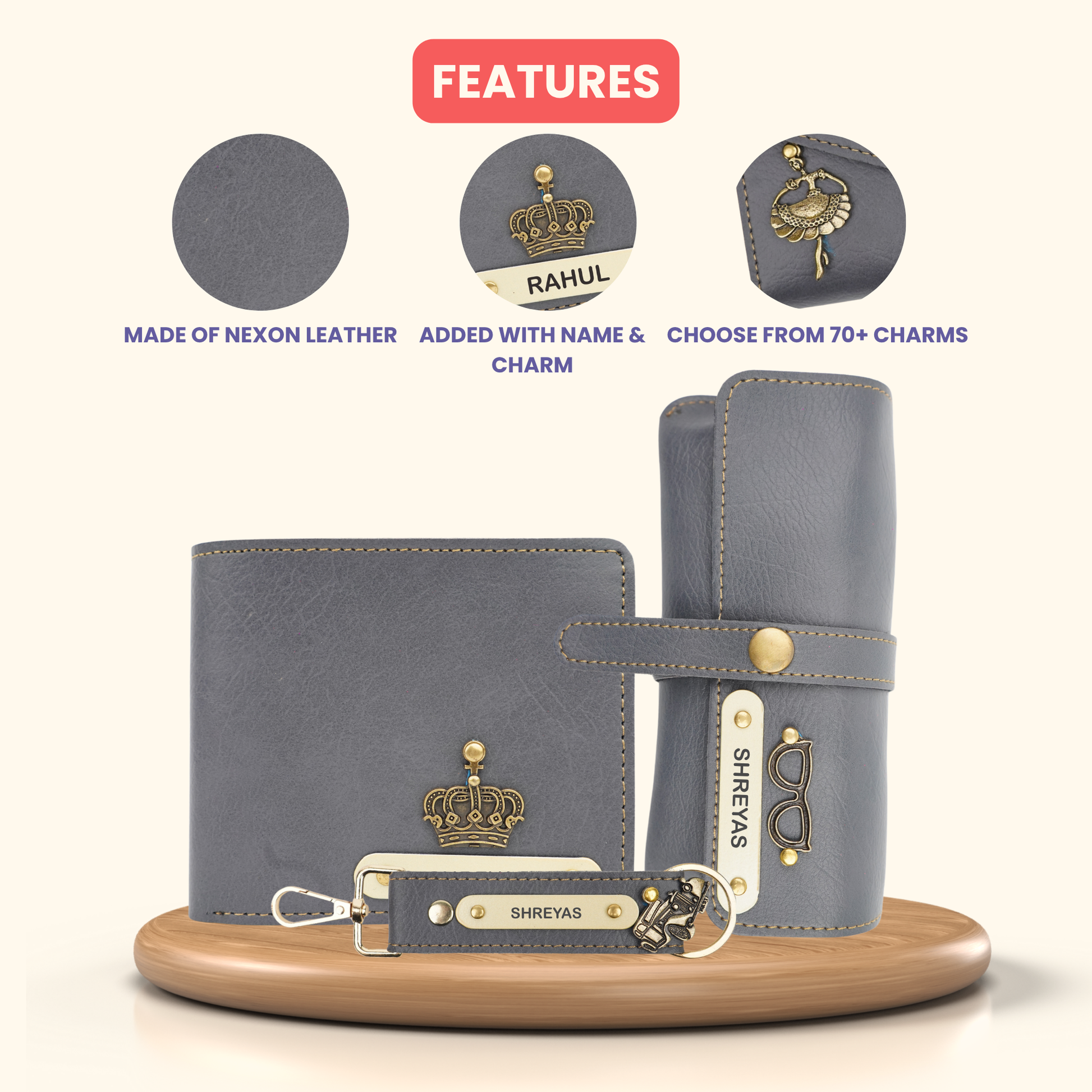 Personalized Men's Combo (3 pcs) - Grey.Add your personal note and polaroid picture to customise the gifts and give it a personal touch.