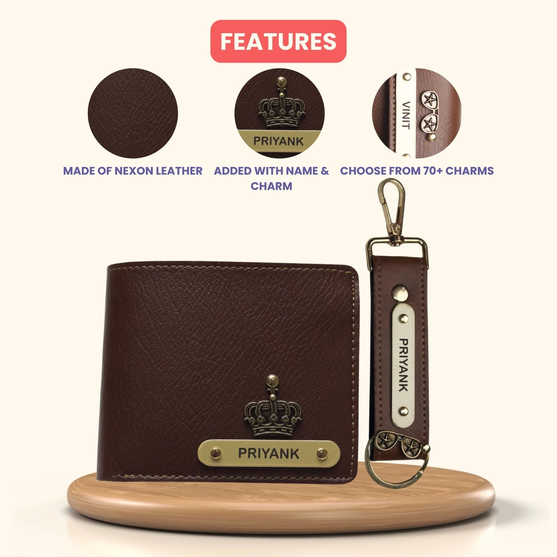 Personalized Men's Combo (2 pcs) - Brown.Add a gift wrap to make it more enticing and appealing.