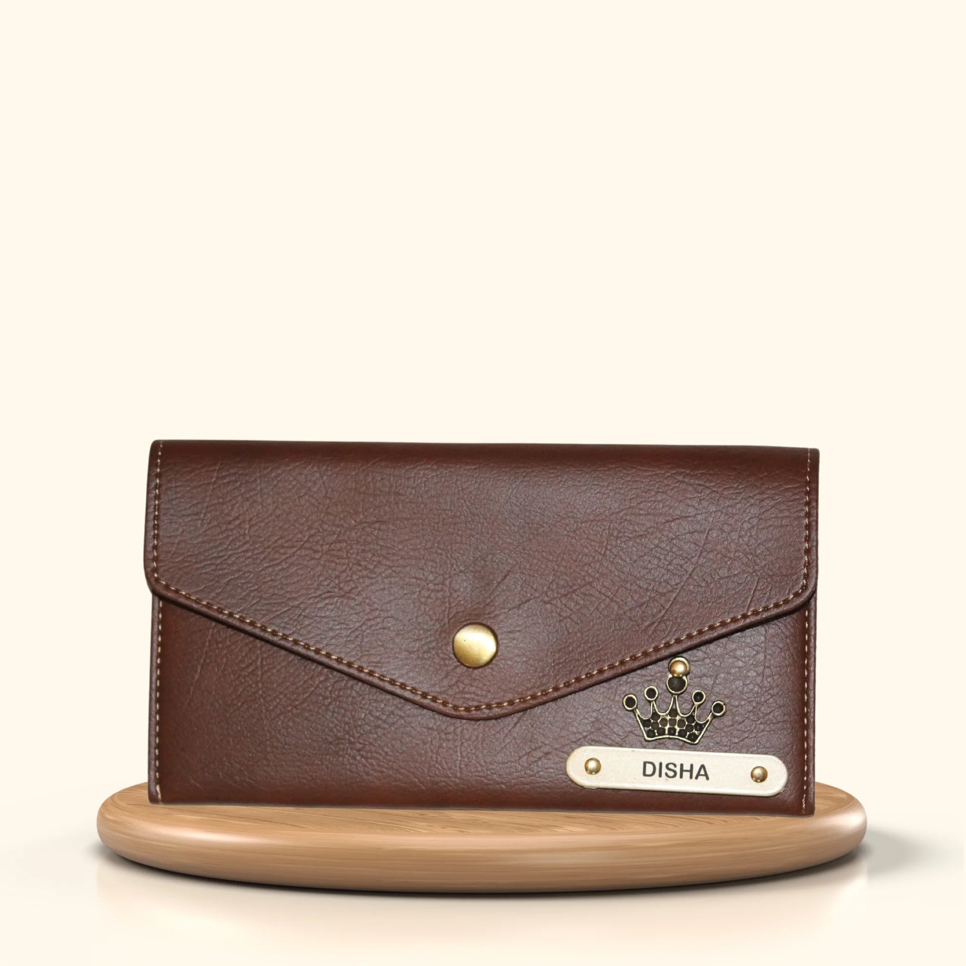 Nexon Leather Personalized Minimal Clutch With Charm - Brown