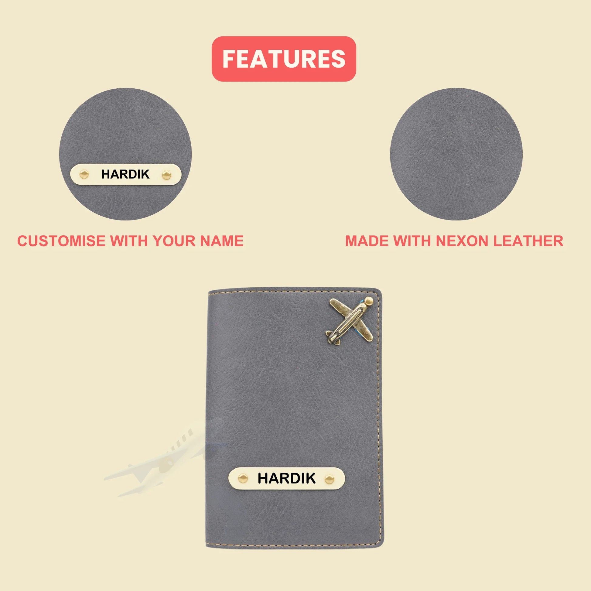 A must-have travel accessory for today's minimalistic traveler who seeks both style and function💃. With a personalized touch, this grey passport cover has your name and charm on it along with its attractive finish and lovely color💞.