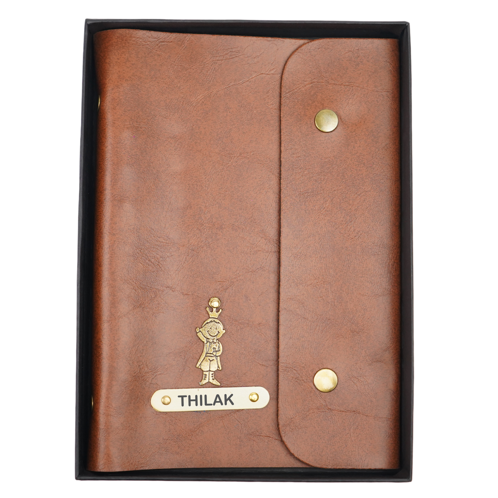 Classy Leather Customized Button Diary (Tan)